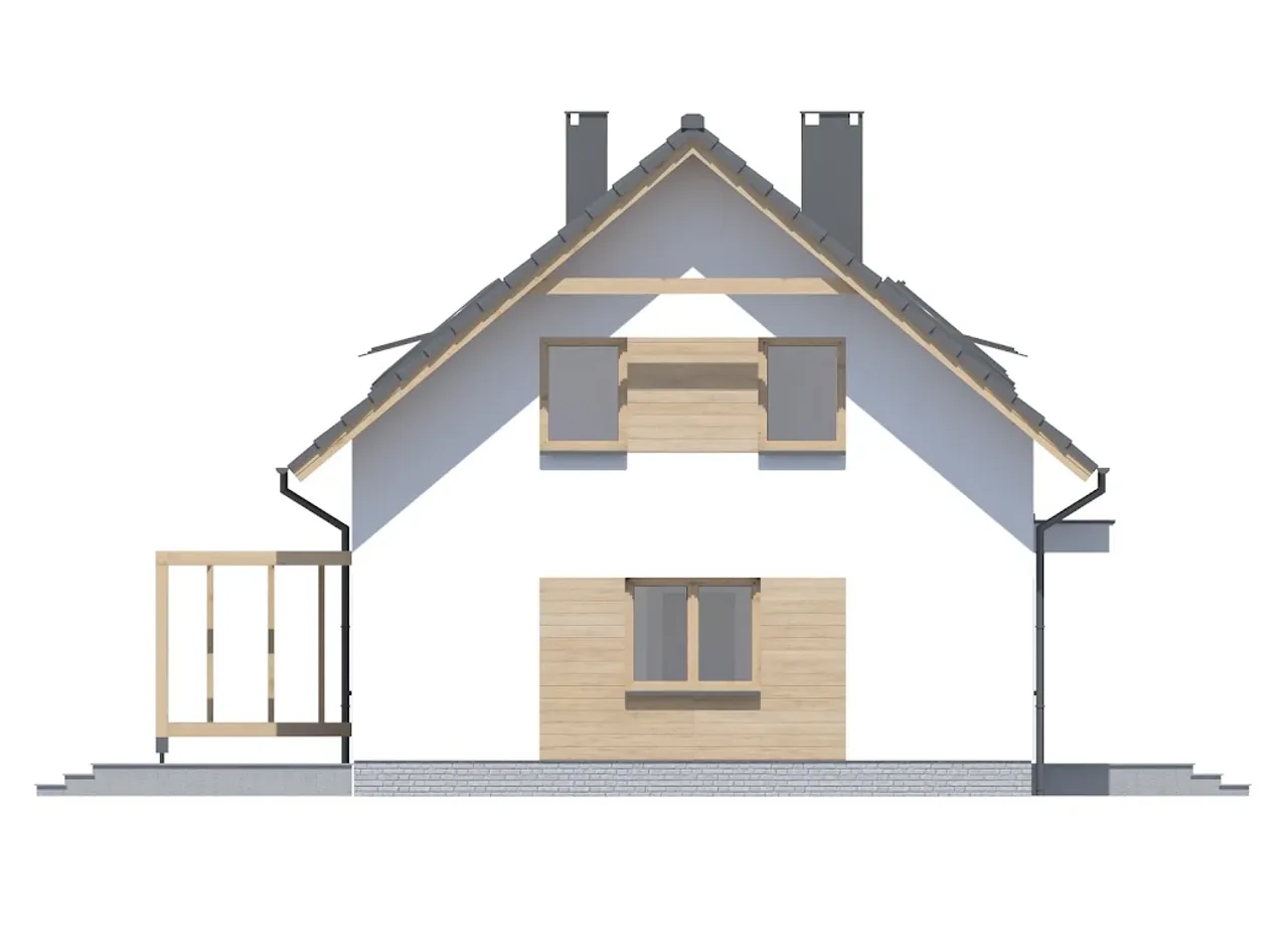 Projekt domu Amigo powstał z myślą o wygodzie i bezpieczeństwie rodziny. Budynek osadzony na solidnych fundamentach betonowych oraz wyposażony w żelbetowy strop wylewany, to synonim trwałości na lata. Wysokiej klasy ściany zewnętrzne o grubości 24 cm oraz 20-centymetrowa warstwa styropianu nie tylko podnoszą energooszczędność, ale też znacząco wpływają na ciszę i komfort w każdym wnętrzu. Dach wykonany z łatwej w utrzymaniu dachówki cementowej lub ceramicznej to gwarancja ochrony przed zmiennymi warunkami pogodowymi. Drewniana więźba nadaje domowi szlachetnego charakteru. Obecność czterech pokoi pozwala na dowolną aranżację prywatnej i wspólnej przestrzeni. Funkcjonalny układ z otwartą strefą dzienną na parterze i praktyczną strefą nocną na poddaszu tworzy idealne warunki dla rodzin. Kominek w sercu domu sprzyja wspólnym chwilom oraz buduje nastrojowy klimat. Nowoczesny projekt Amigo można zrealizować na działkach z kalenicą równoległą do drogi, co ułatwia jego dopasowanie do różnych warunków zabudowy.