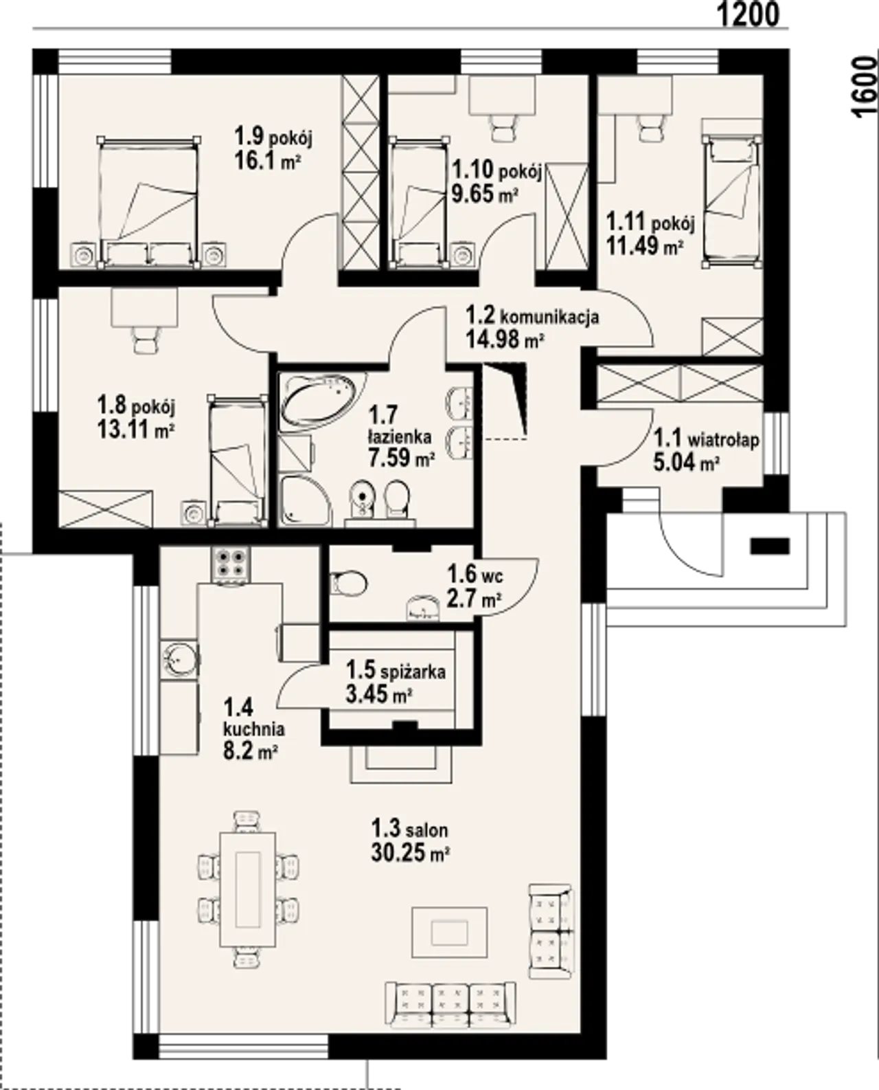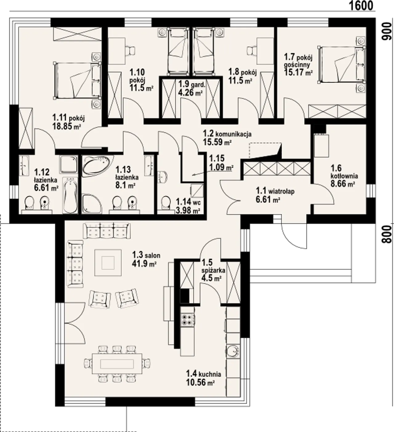 Wypełnij formularz i otrzymaj rysunki w pdf z dokładnymi wymiarami budynku i pomieszczeń (długość, szerokość, wysokość) dla projektu Amodowo średnie