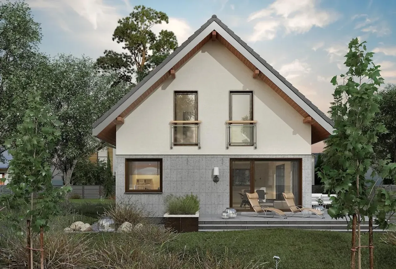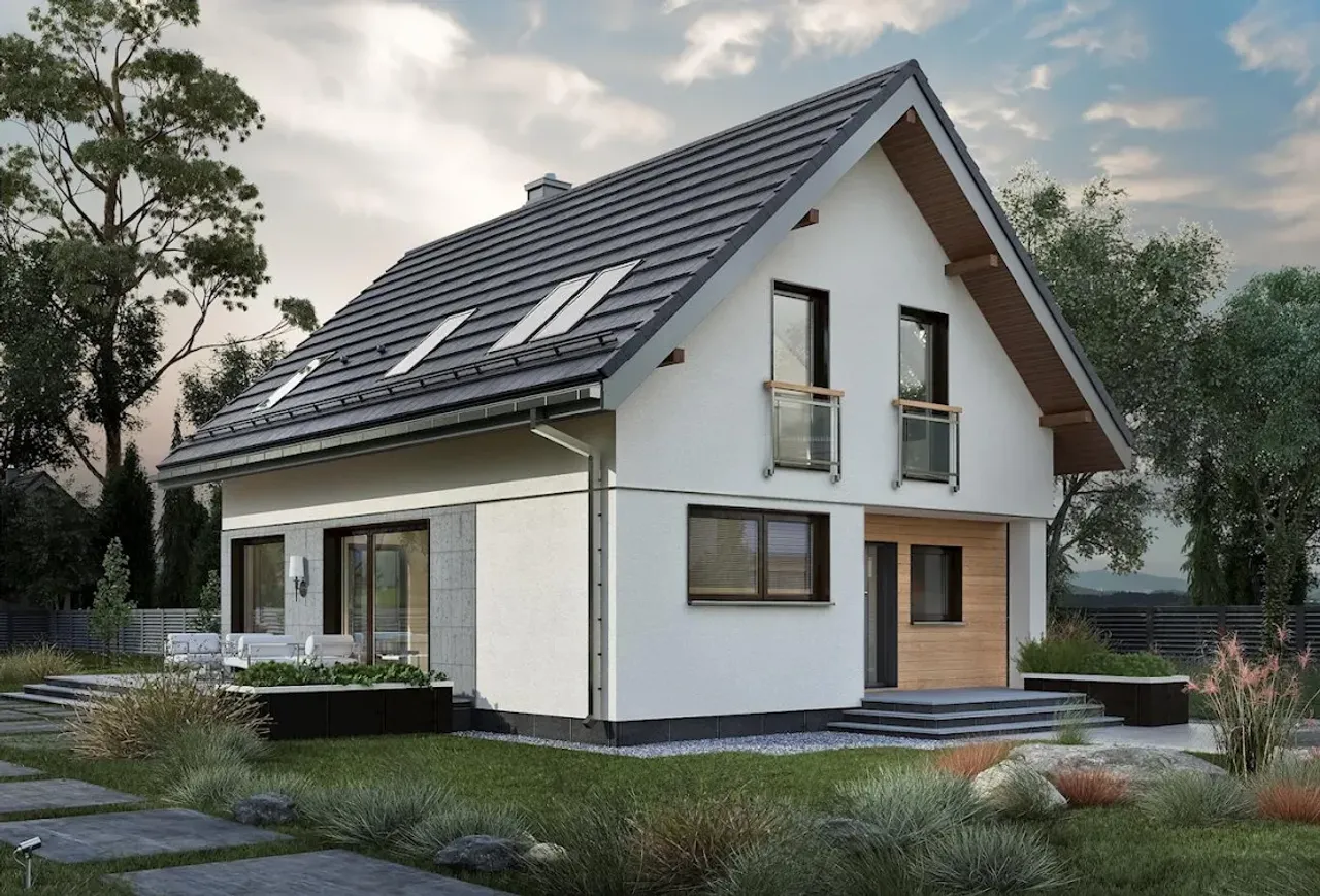 - elewacje - pokazują dokładny wygląd domu od frontu, z tyłu i z boków