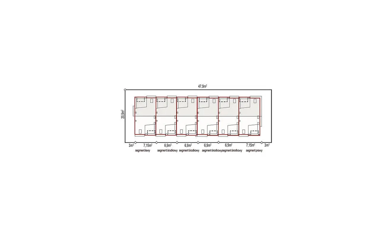 Wypełnij formularz i otrzymaj rysunki w pdf z dokładnymi wymiarami budynku i pomieszczeń (długość, szerokość, wysokość) dla projektu Andrea 6 segmentów