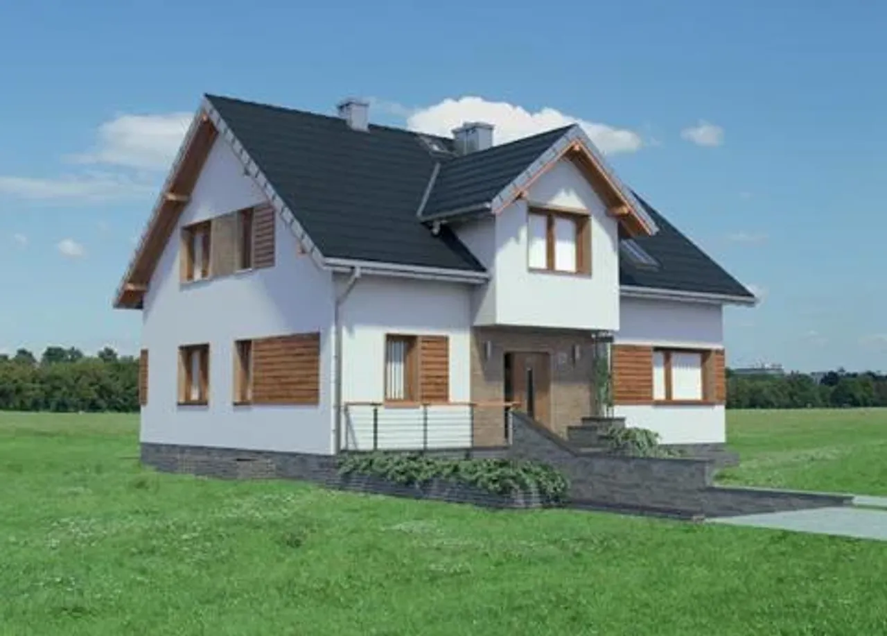 - elewacje - pokazują dokładny wygląd domu od frontu, z tyłu i z boków
