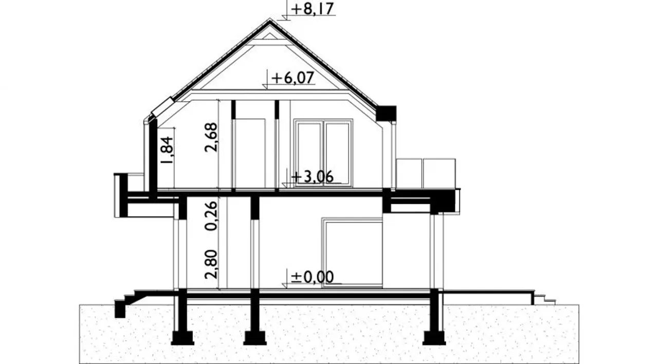 - przekroje - pokazują wszystkie elementy budynku po przecięciu go wzdłuż lub w poprzek od dachu do fundamentów tj. warstwy podłogi, stropów i dachu