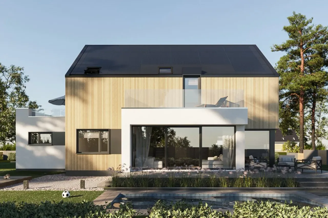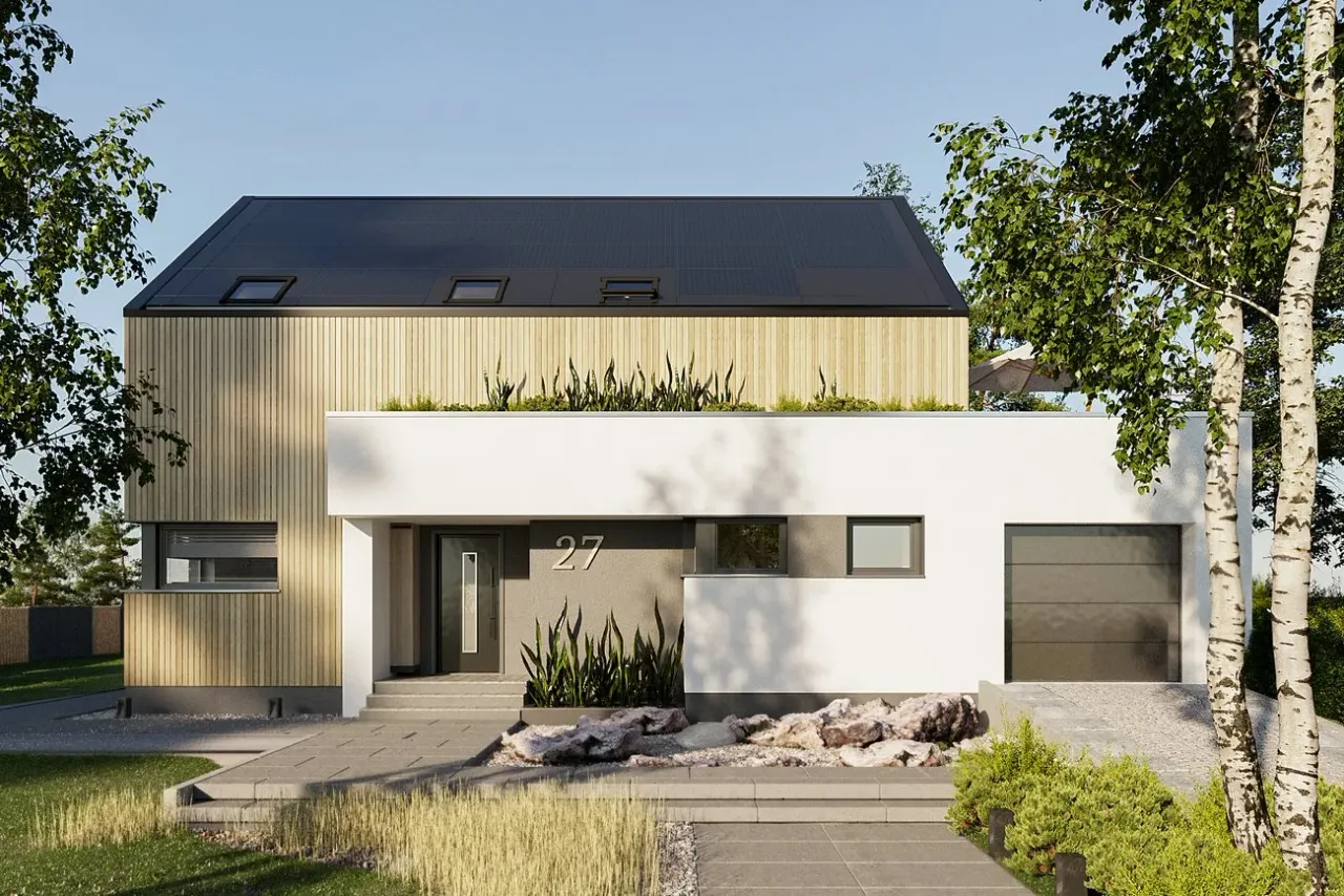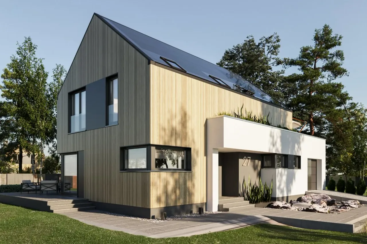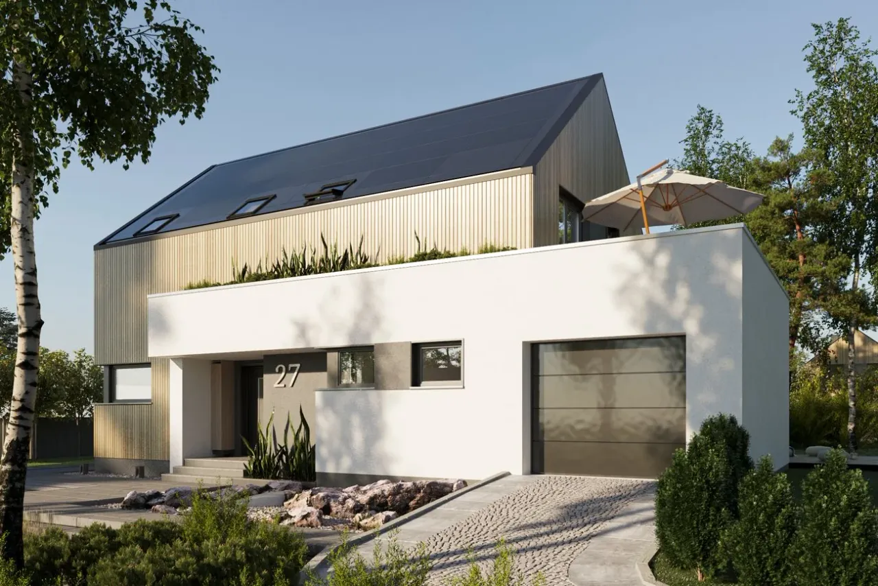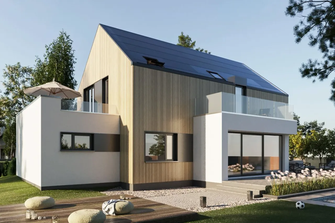 - elewacje - pokazują dokładny wygląd domu od frontu, z tyłu i z boków