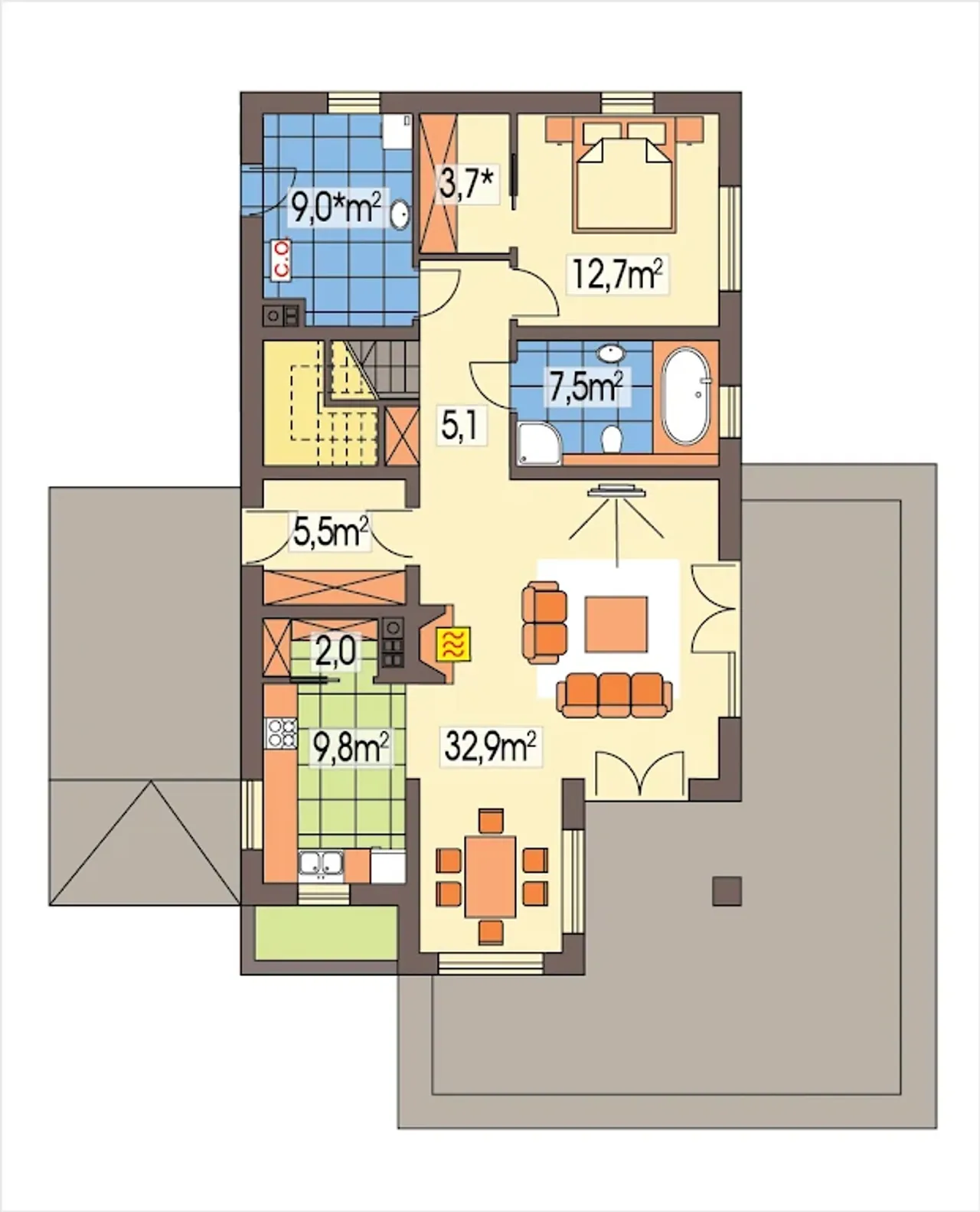 Wypełnij formularz i otrzymaj rysunki w pdf z dokładnymi wymiarami budynku i pomieszczeń (długość, szerokość, wysokość) dla projektu Antoni wersja A bez garażu
