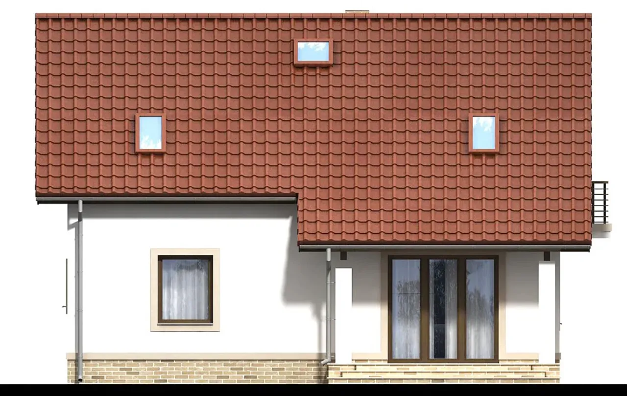 Funkcjonalny projekt domu jednorodzinnego łączy tradycyjny styl z praktycznymi rozwiązaniami współczesnego budownictwa. Doskonale sprawdzi się dla rodzin, które poszukują wygodnego miejsca do życia przez cały rok, w domu murowanym i energooszczędnym. Kominek w salonie, przestronny taras oraz poddasze użytkowe tworzą wyjątkową przestrzeń do wspólnego spędzania czasu i odpoczynku.