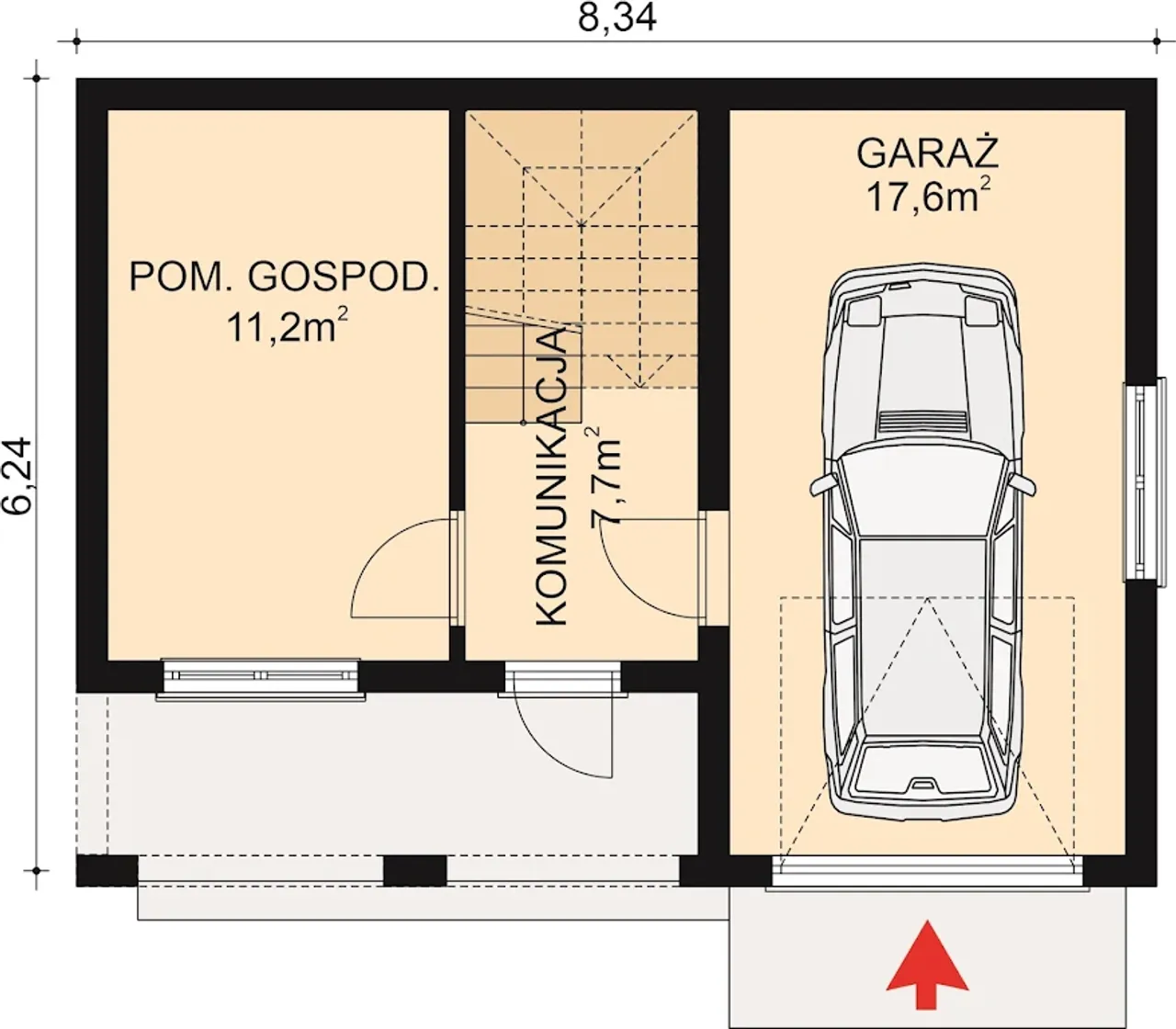 | Szerokość budynku 8.34 m |