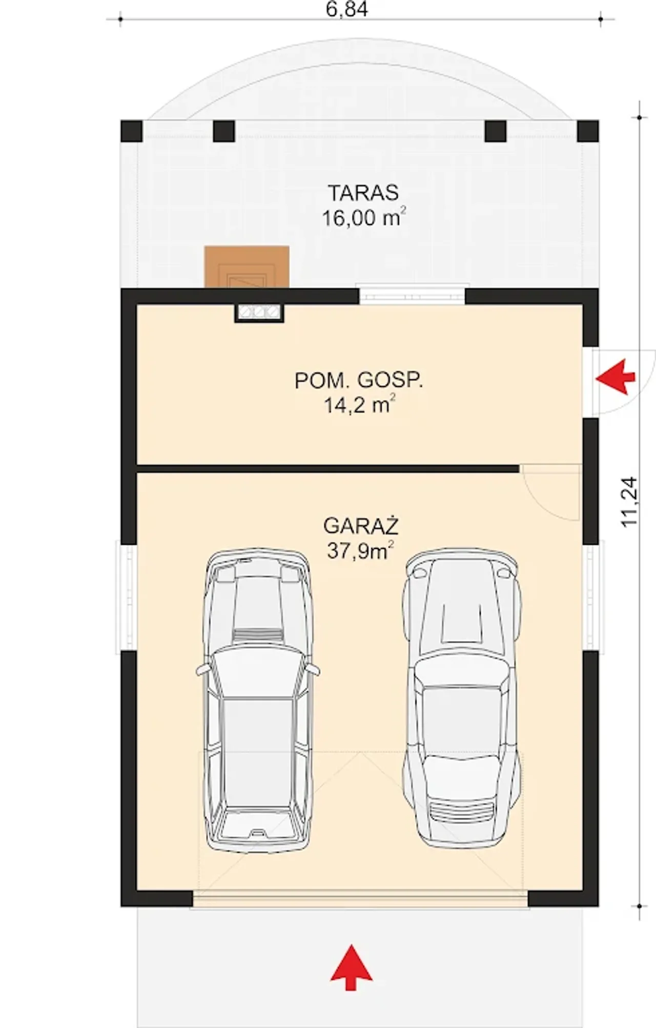 | Przestrzeń z pom. gospodarczym, z wiatą/altaną |
