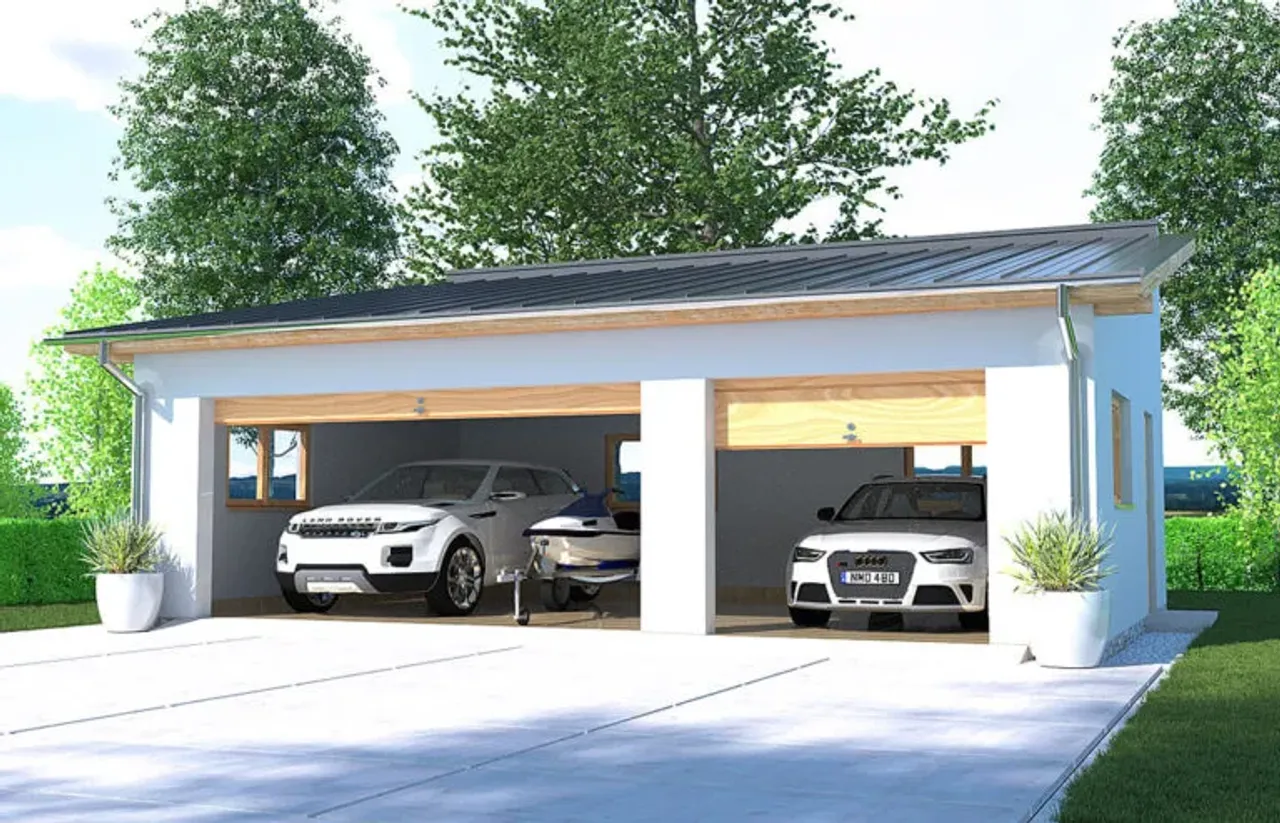 Wypełnij formularz i otrzymaj rysunki w pdf z dokładnymi wymiarami budynku i pomieszczeń (długość, szerokość, wysokość) dla projektu APG 2E garaż