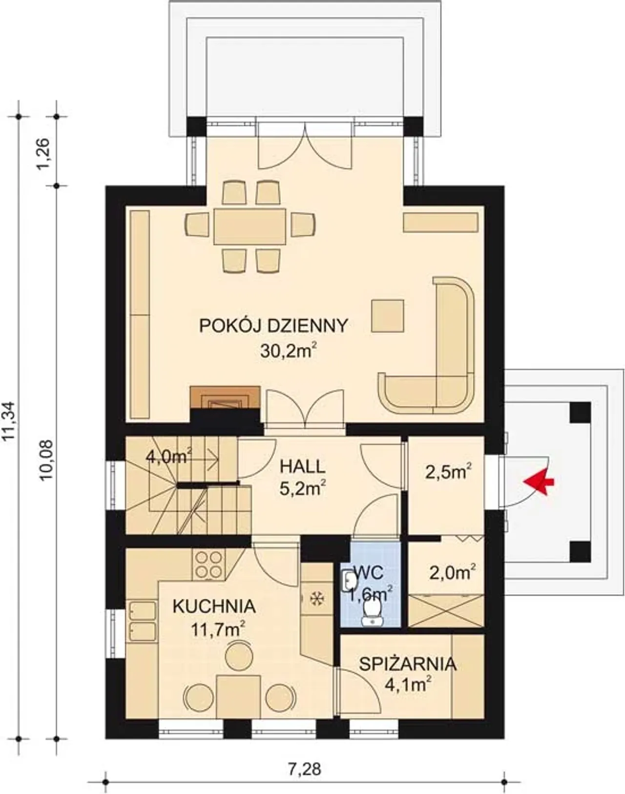 4. Pomieszczenie gospodarcze | 5,00 m² |