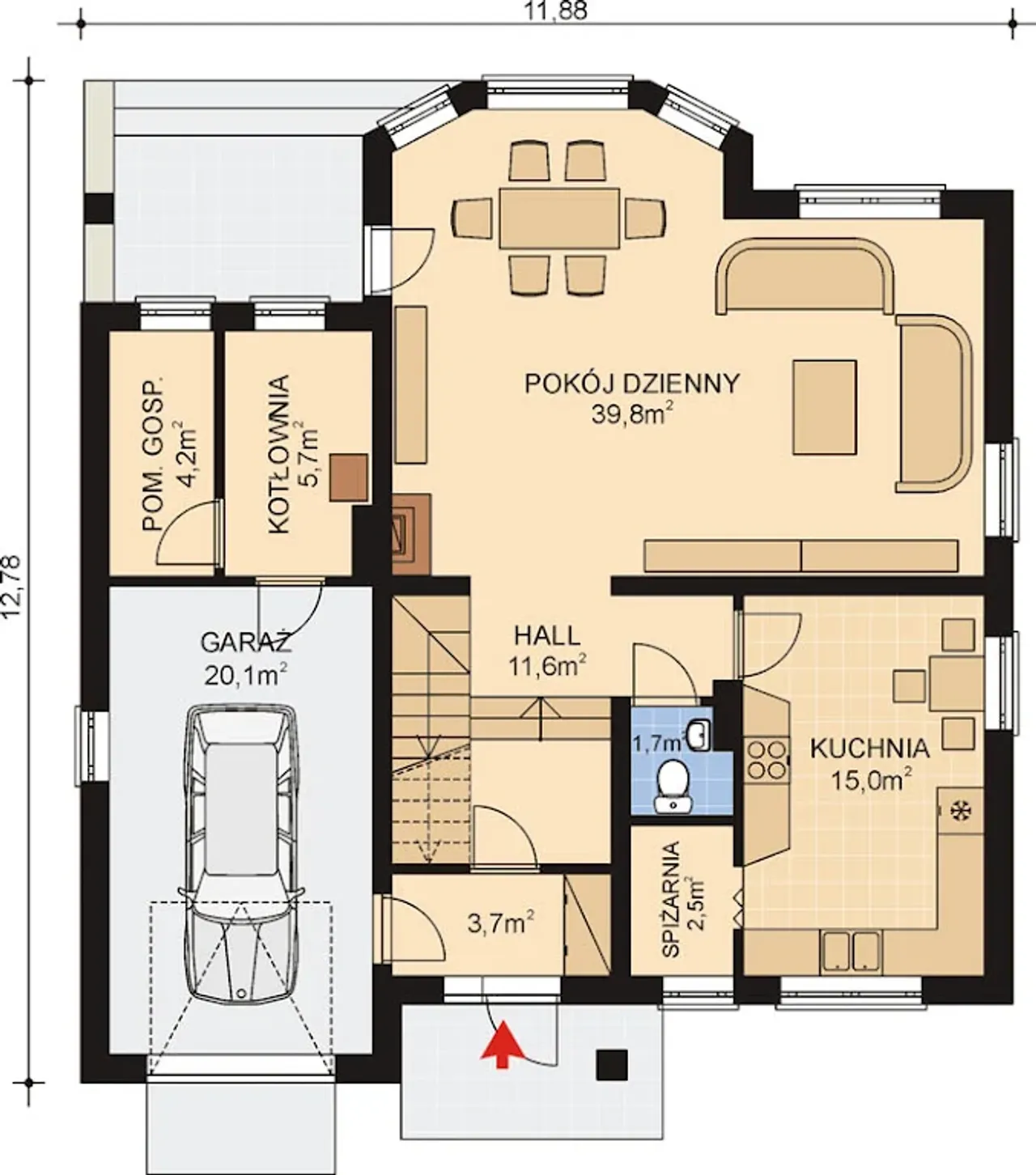 Szerokość budynku 11.88 m |