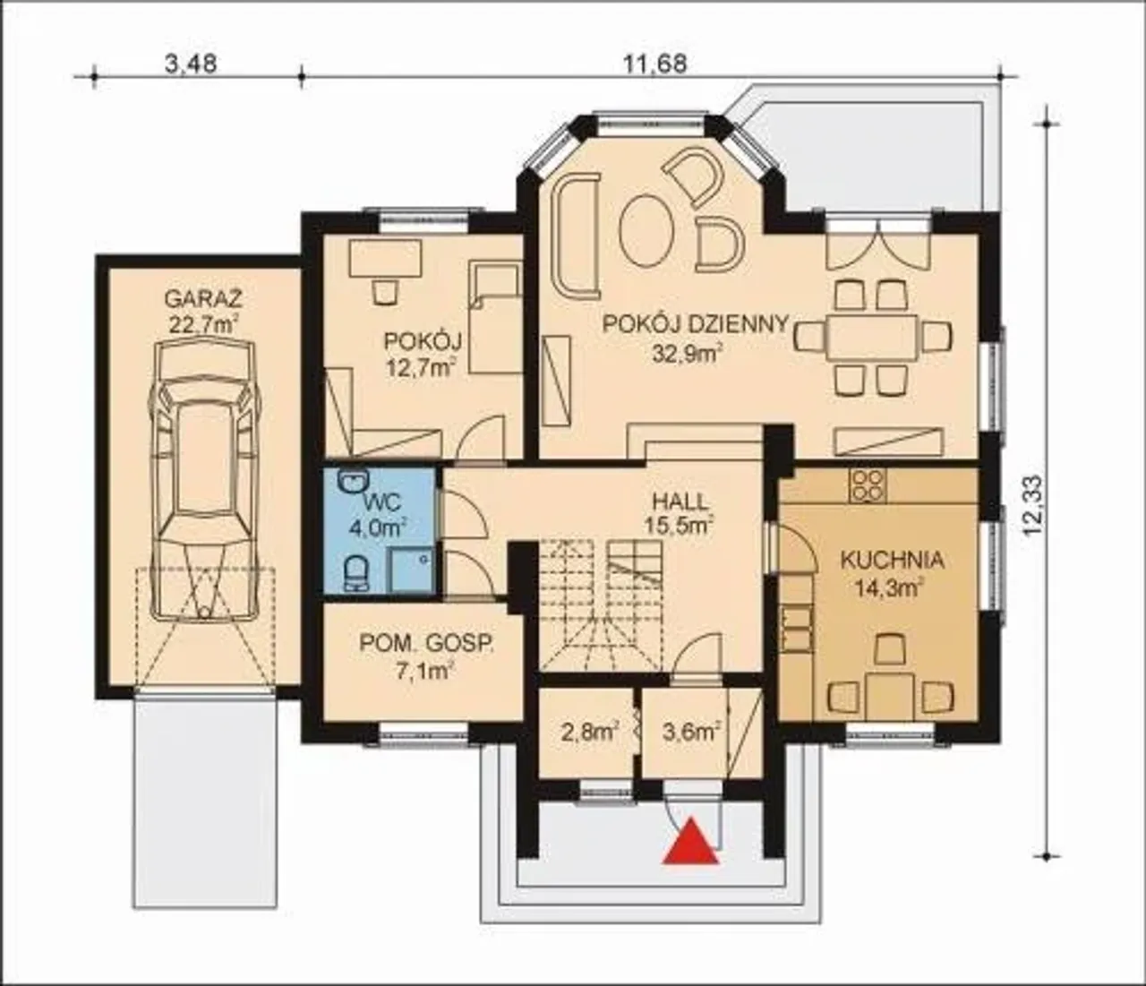 Wypełnij formularz i otrzymaj rysunki w pdf z dokładnymi wymiarami budynku i pomieszczeń (długość, szerokość, wysokość) dla projektu APS 044+G