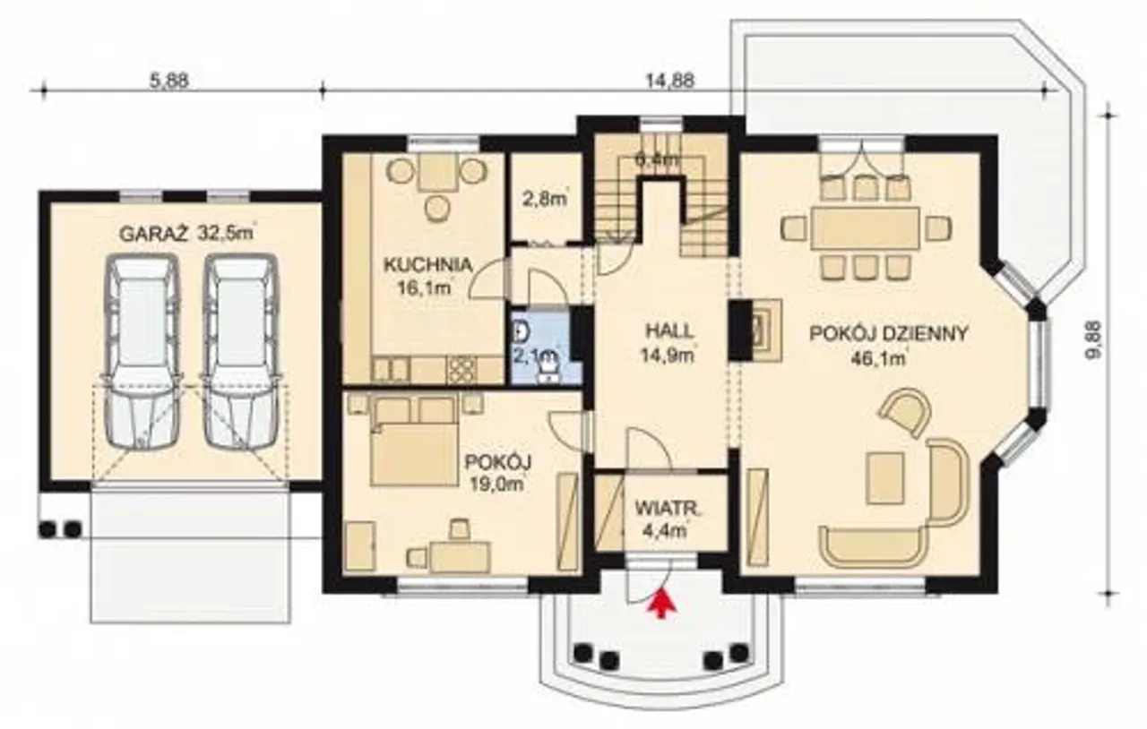 Wypełnij formularz i otrzymaj rysunki w pdf z dokładnymi wymiarami budynku i pomieszczeń (długość, szerokość, wysokość) dla projektu APS 046+G