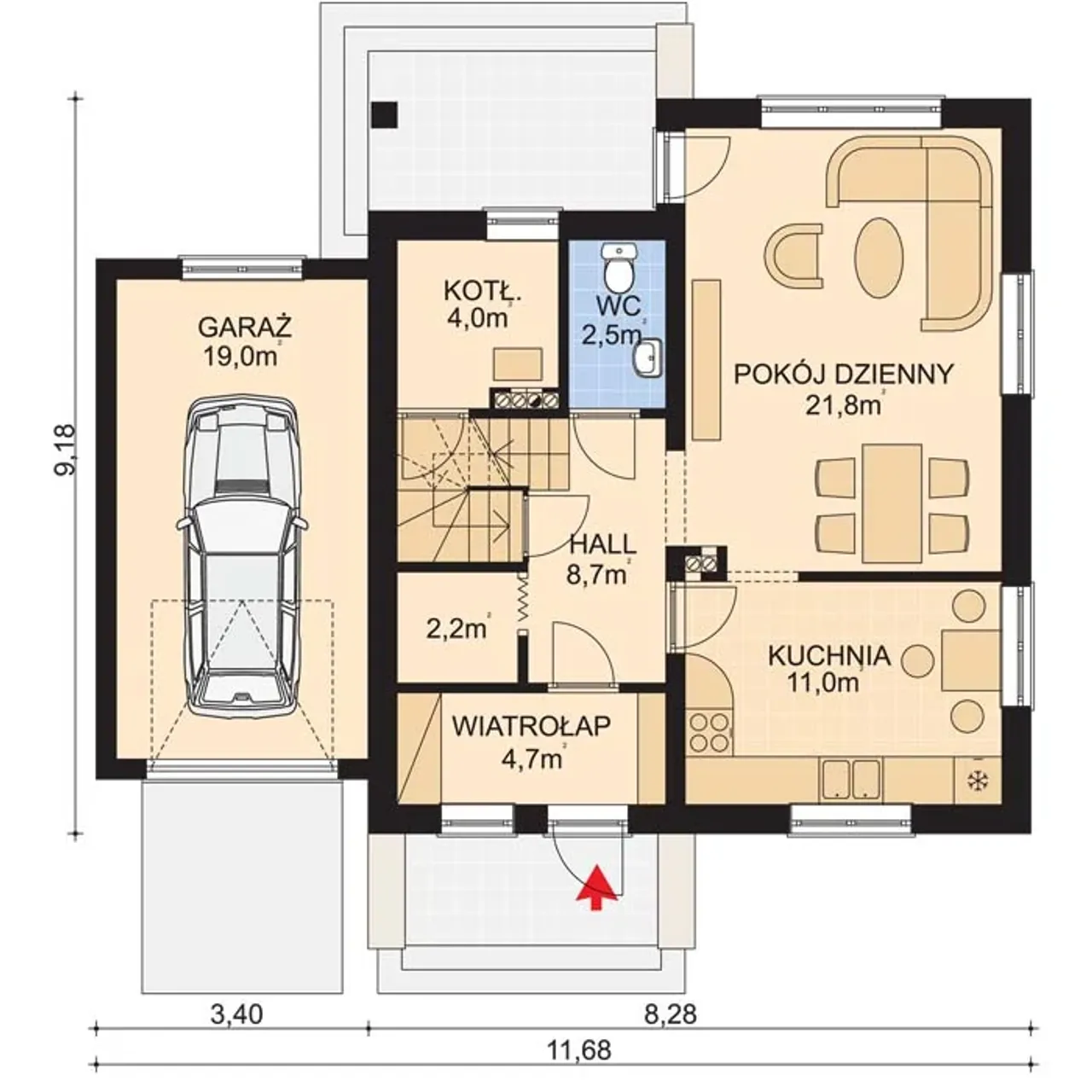 Wypełnij formularz i otrzymaj rysunki w pdf z dokładnymi wymiarami budynku i pomieszczeń (długość, szerokość, wysokość) dla projektu APS 068