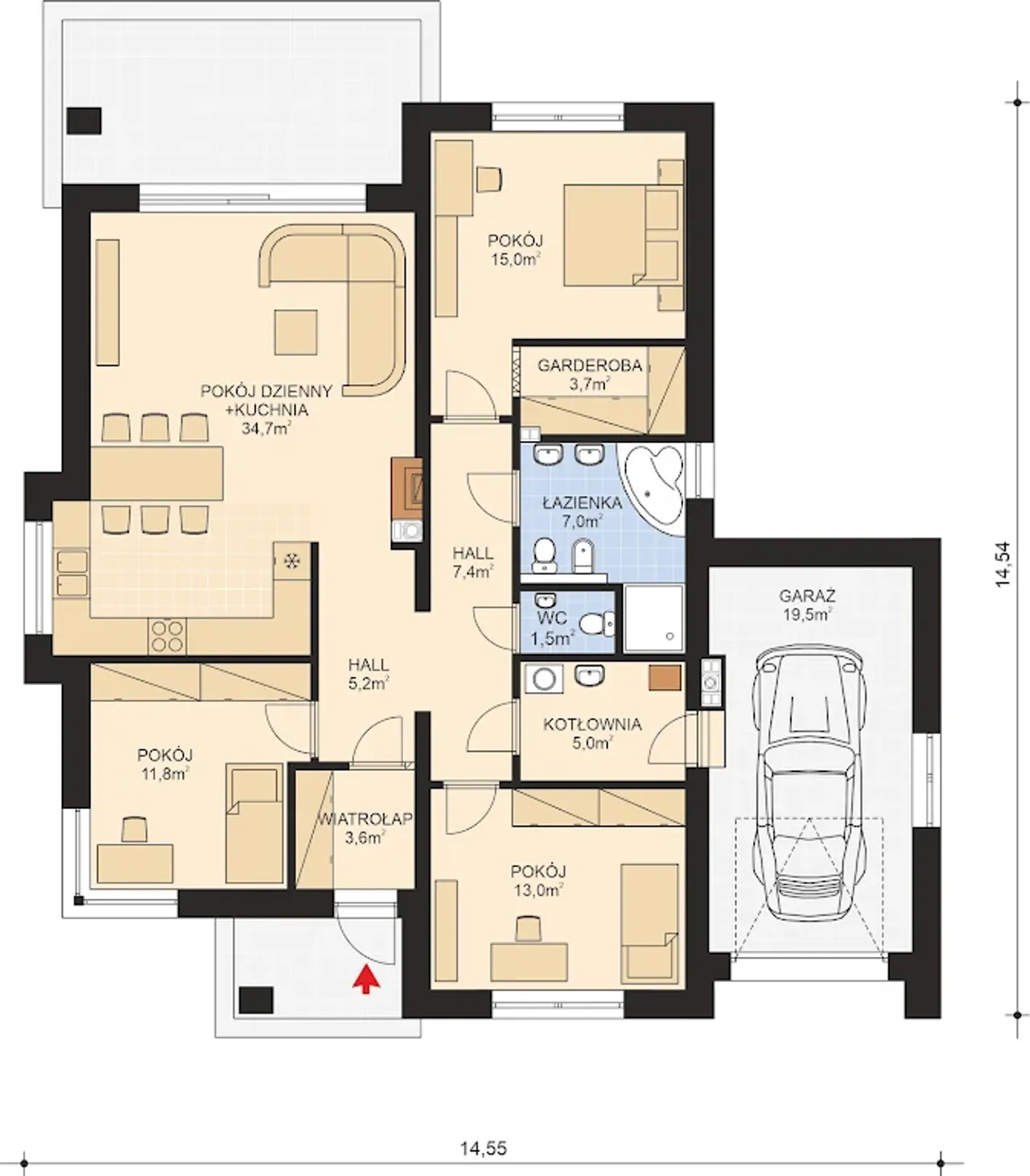 Wypełnij formularz i otrzymaj rysunki w pdf z dokładnymi wymiarami budynku i pomieszczeń (długość, szerokość, wysokość) dla projektu APS 093 wariant 2