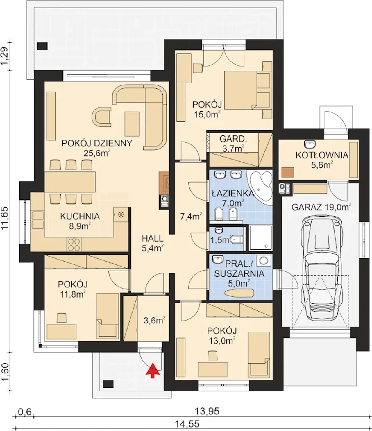 Wypełnij formularz i otrzymaj rysunki w pdf z dokładnymi wymiarami budynku i pomieszczeń (długość, szerokość, wysokość) dla projektu APS 093 wariant 3
