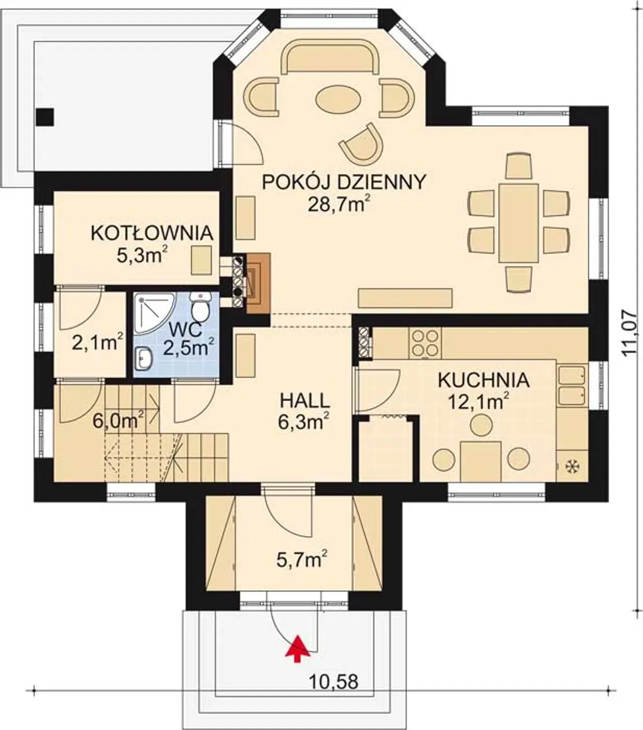 Szerokość budynku 10.58 m |