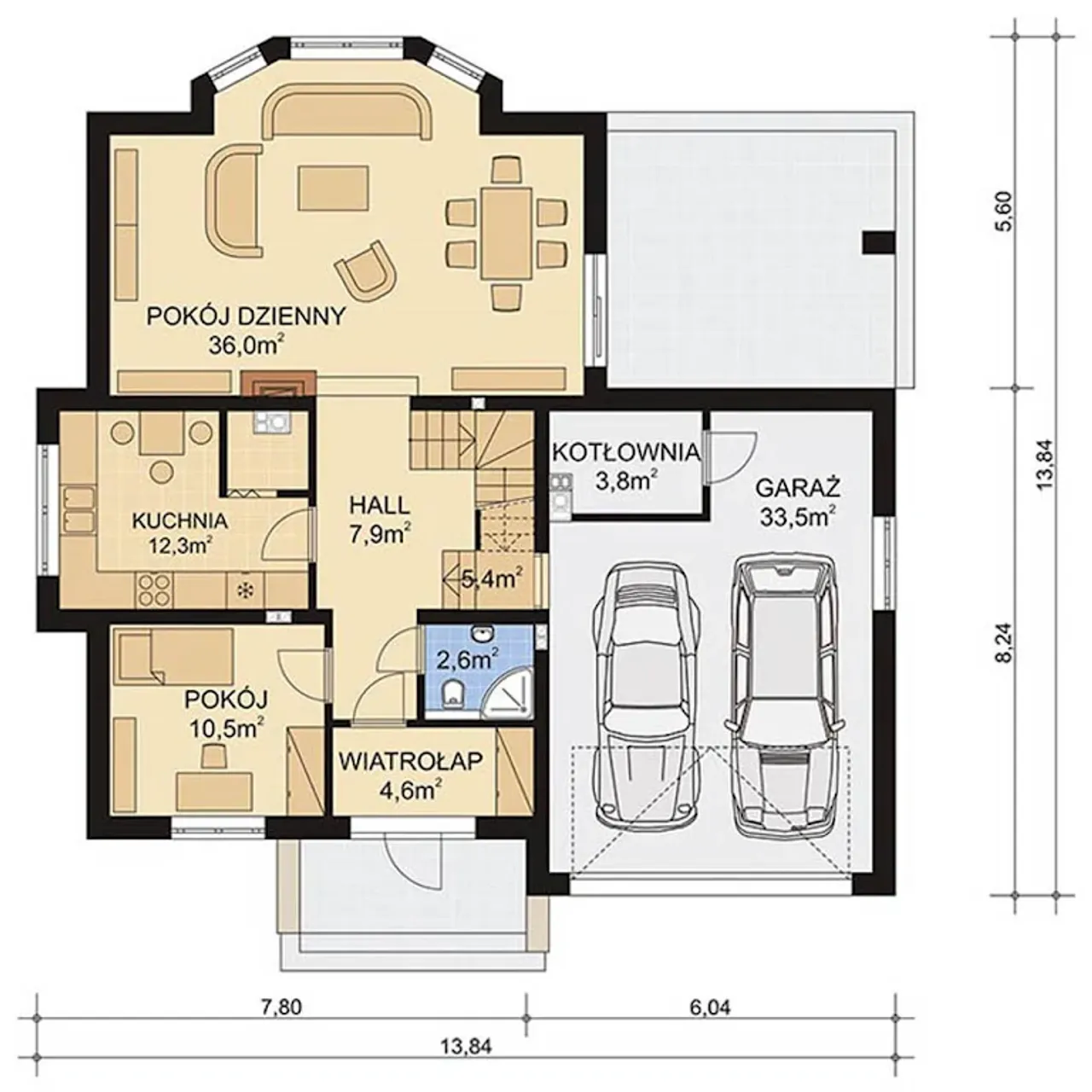 4. Pokój dzienny z jadalnią | 36,00 m² |