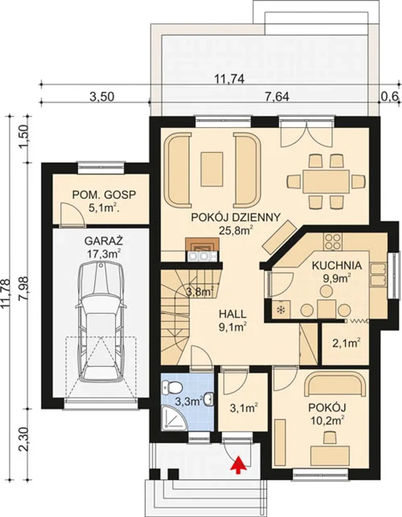 6. Pomieszczenie gospodarcze | 9,80 m² |