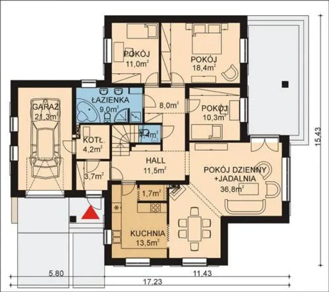 Szerokość budynku 17.23 m |
