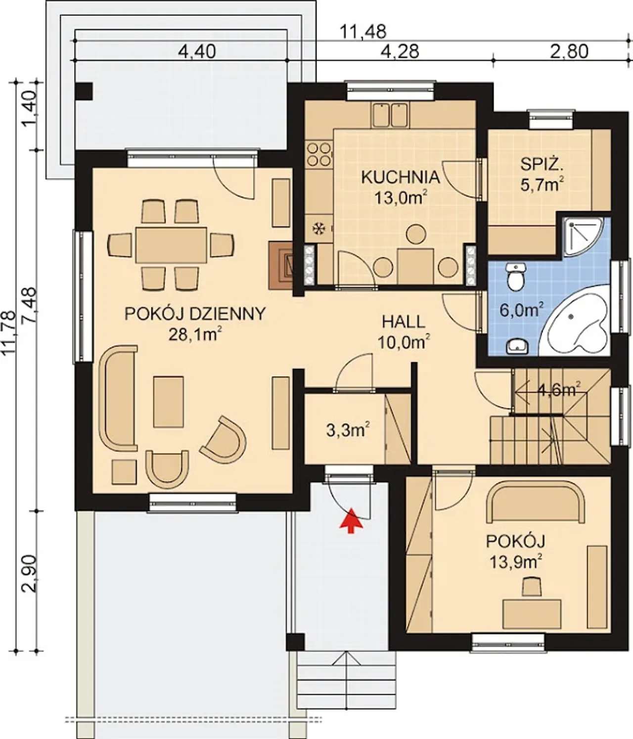 6. Pomieszczenie gospodarcze | 13,20 m² |