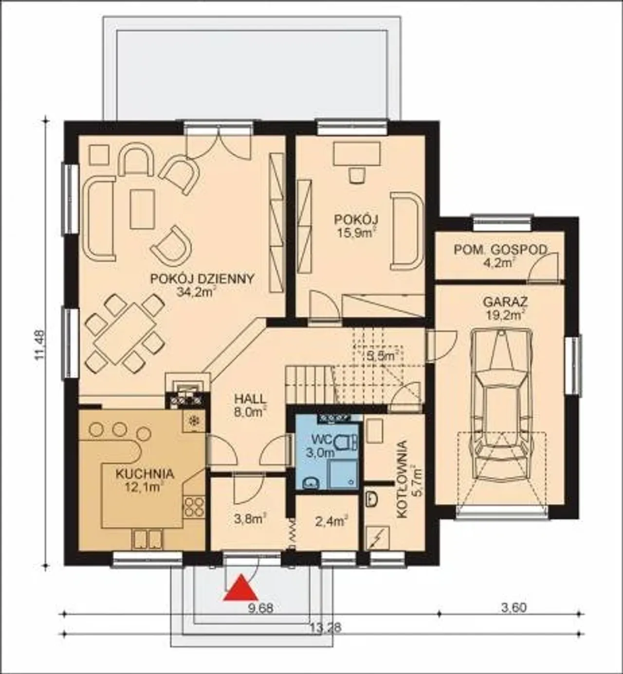 10. Pomieszczenie gospodarcze | 3,80 m² |