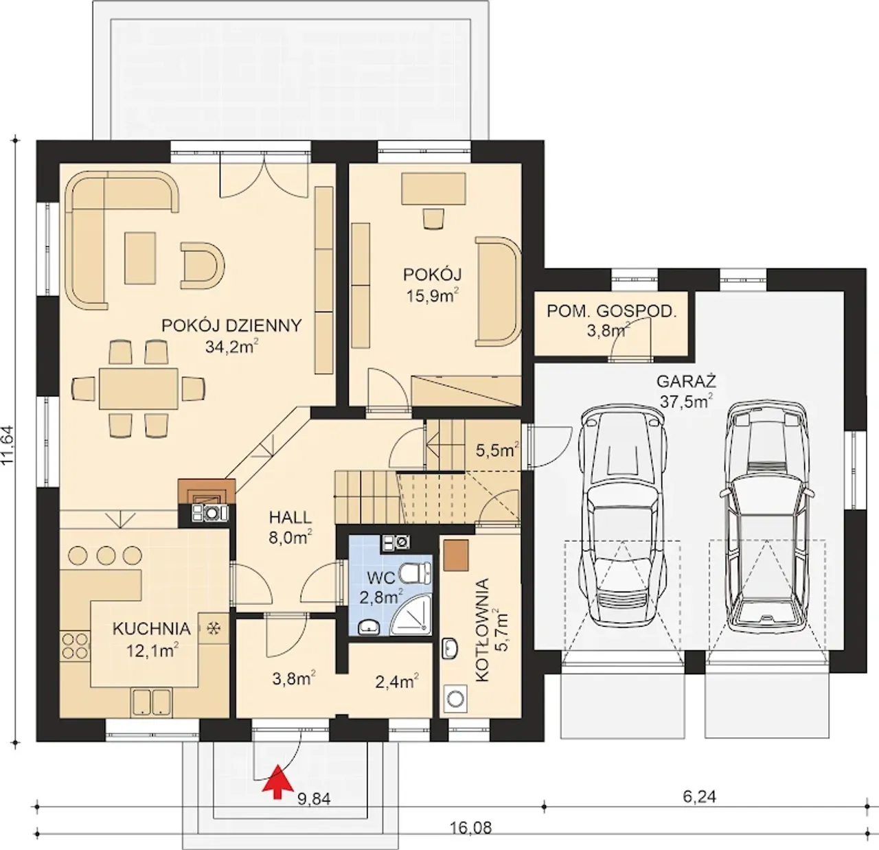 4. Pokój dzienny z jadalnią | 34,20 m² |