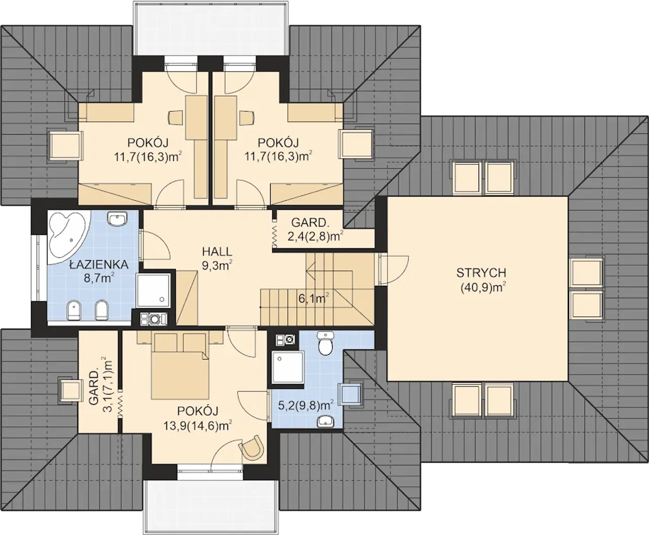 Wypełnij formularz i otrzymaj rysunki w pdf z dokładnymi wymiarami budynku i pomieszczeń (długość, szerokość, wysokość) dla projektu APS 136+2G