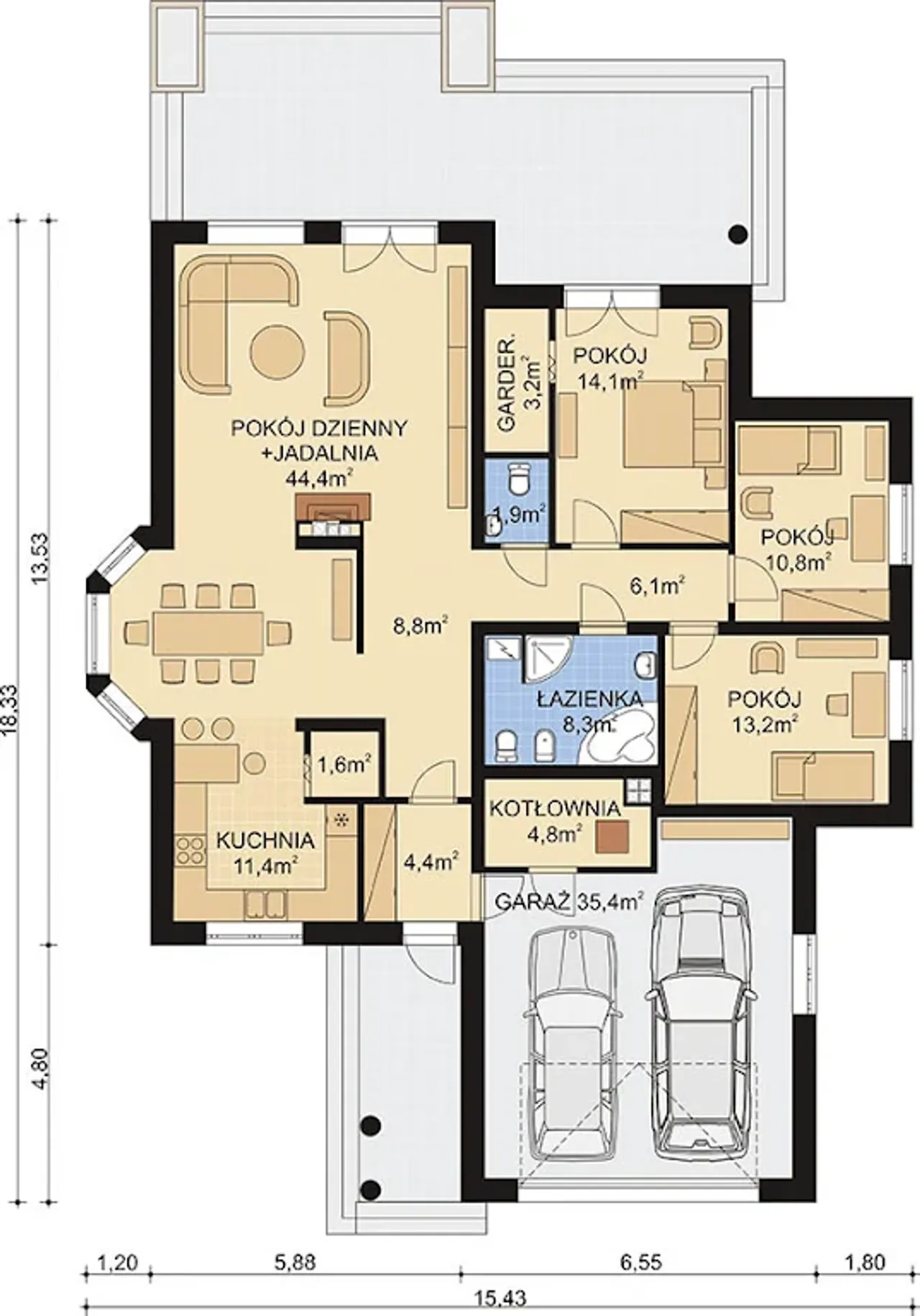 Wypełnij formularz i otrzymaj rysunki w pdf z dokładnymi wymiarami budynku i pomieszczeń (długość, szerokość, wysokość) dla projektu APS 145 wersja 2