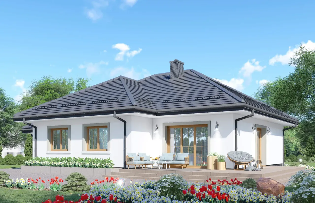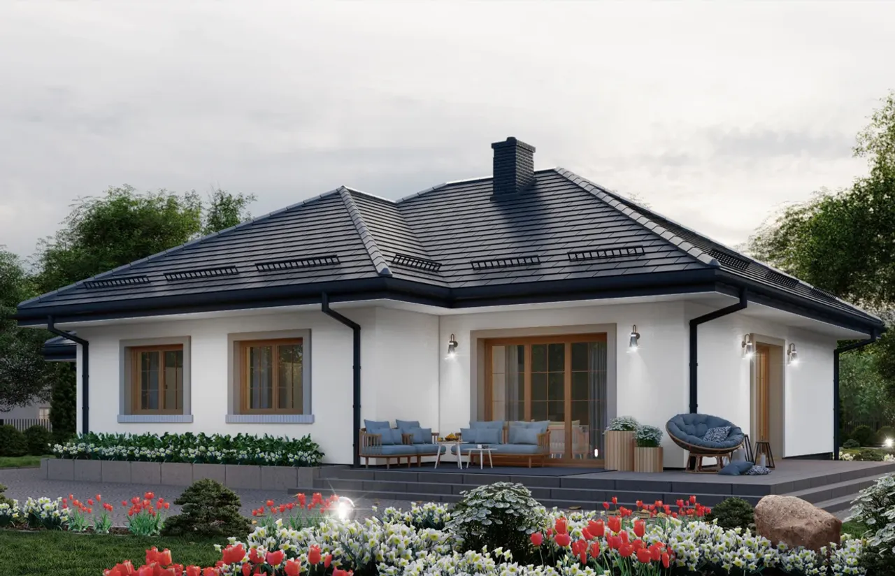 - Pokrycie dachu: dachówka płaska Koramic Orea.