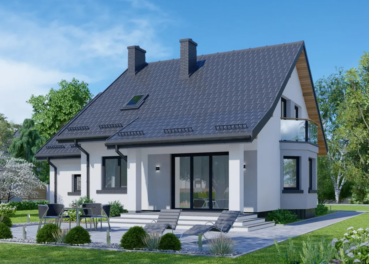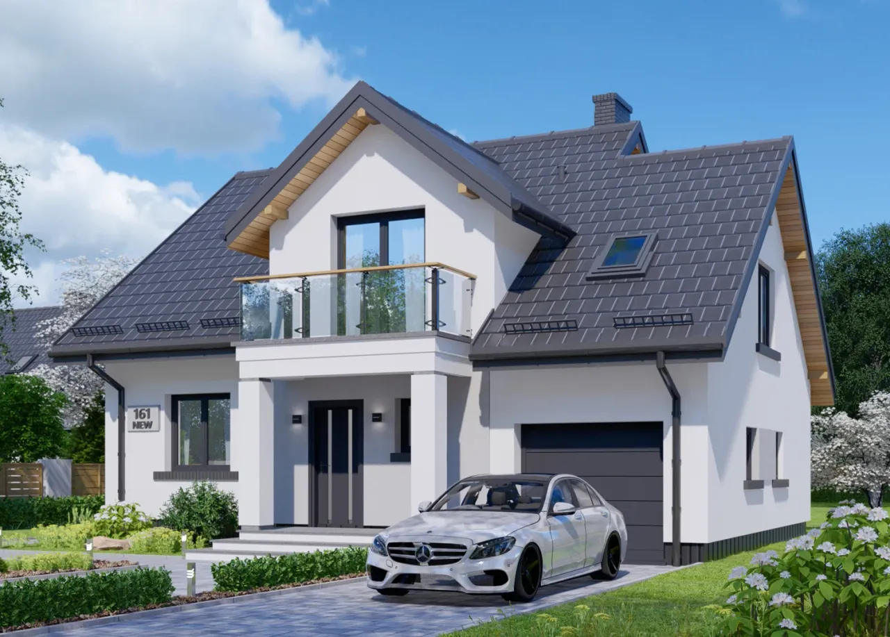 Projekt domu APS 161 NEW idealnie wpisuje się w potrzeby współczesnej rodziny, szukającej nie tylko komfortu i funkcjonalności, ale również unikalnego designu. Elegancka bryła budynku z nowoczesnymi, dużymi przeszkleniami dostarcza nie tylko światła, ale także pozwala na cieszenie się widokiem otaczającej przyrody, co jest bezcenne, zwłaszcza w dzisiejszych, szybko zmieniających się czasach. Layout wnętrza z wyraźnie oddzielonymi strefami wypoczynku i aktywności umożliwia harmonijne współistnienie różnych rytmów dnia każdego z domowników. Ponadto, niebanalne połączenie estetyki z ekologią wzmacnia przekonanie, że jest to dom przyszłości - zrównoważony i piękny.