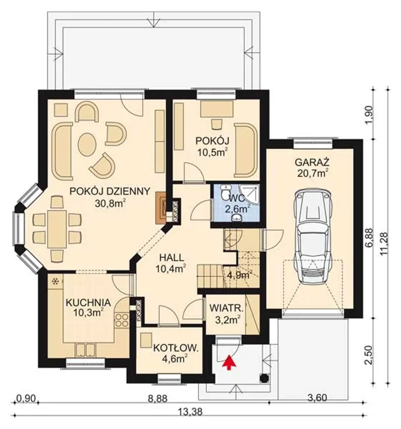 Szerokość budynku 13.38 m |