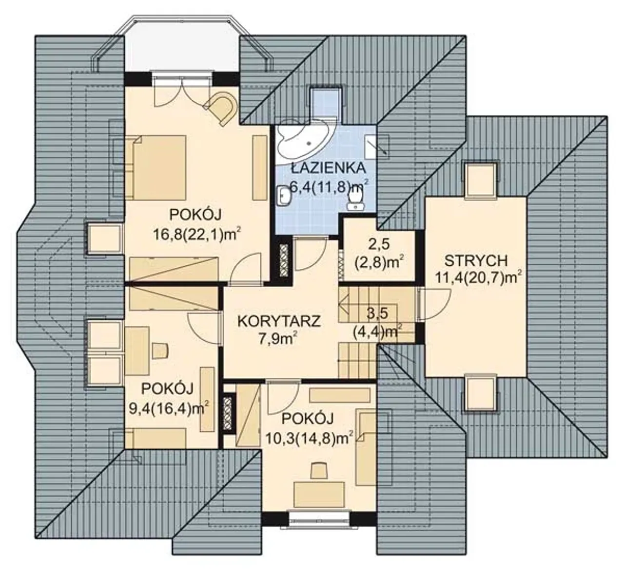 3. Pokój | 16,80 (22,10) m² |