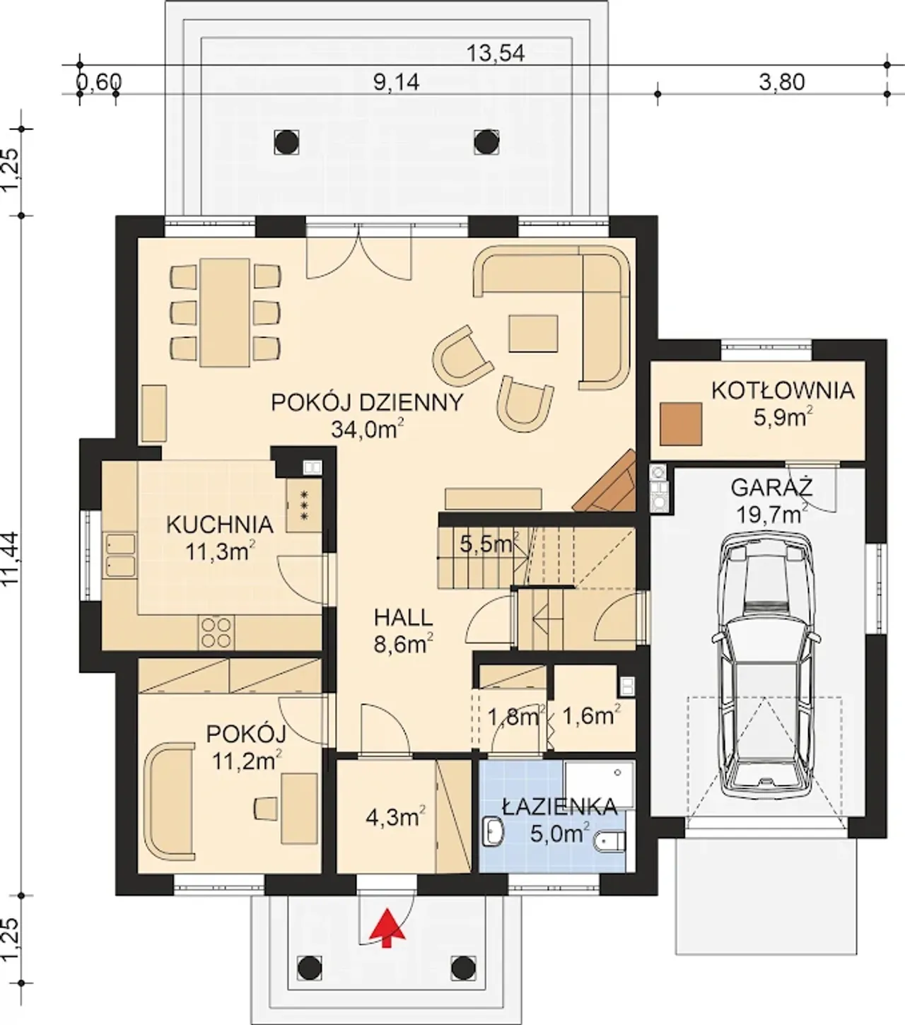 4. Pokój dzienny z jadalnią | 34,00 m² |
