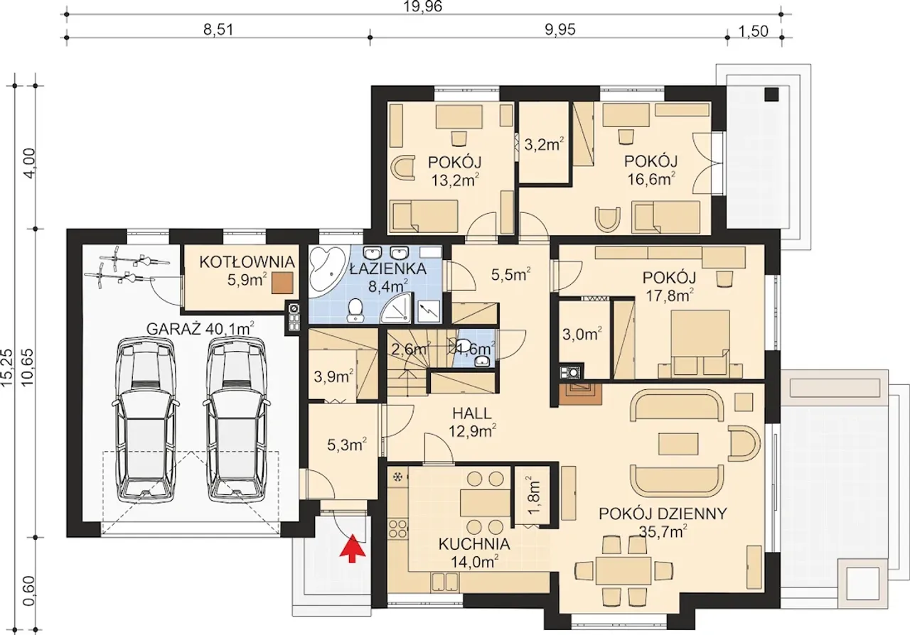 Szerokość budynku 19.96 m |