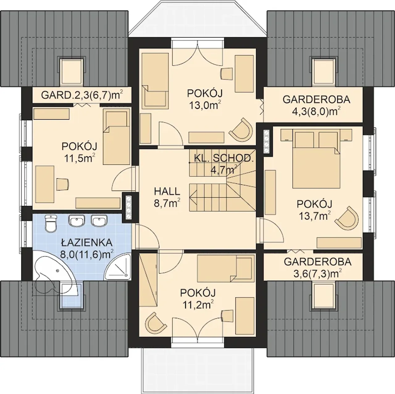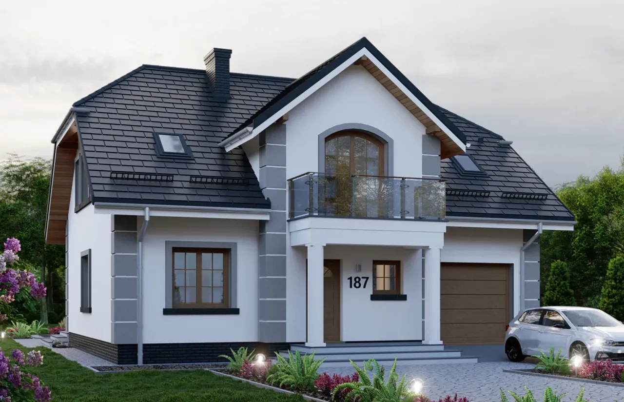 Wypełnij formularz i otrzymaj rysunki w pdf z dokładnymi wymiarami budynku i pomieszczeń (długość, szerokość, wysokość) dla projektu APS 187