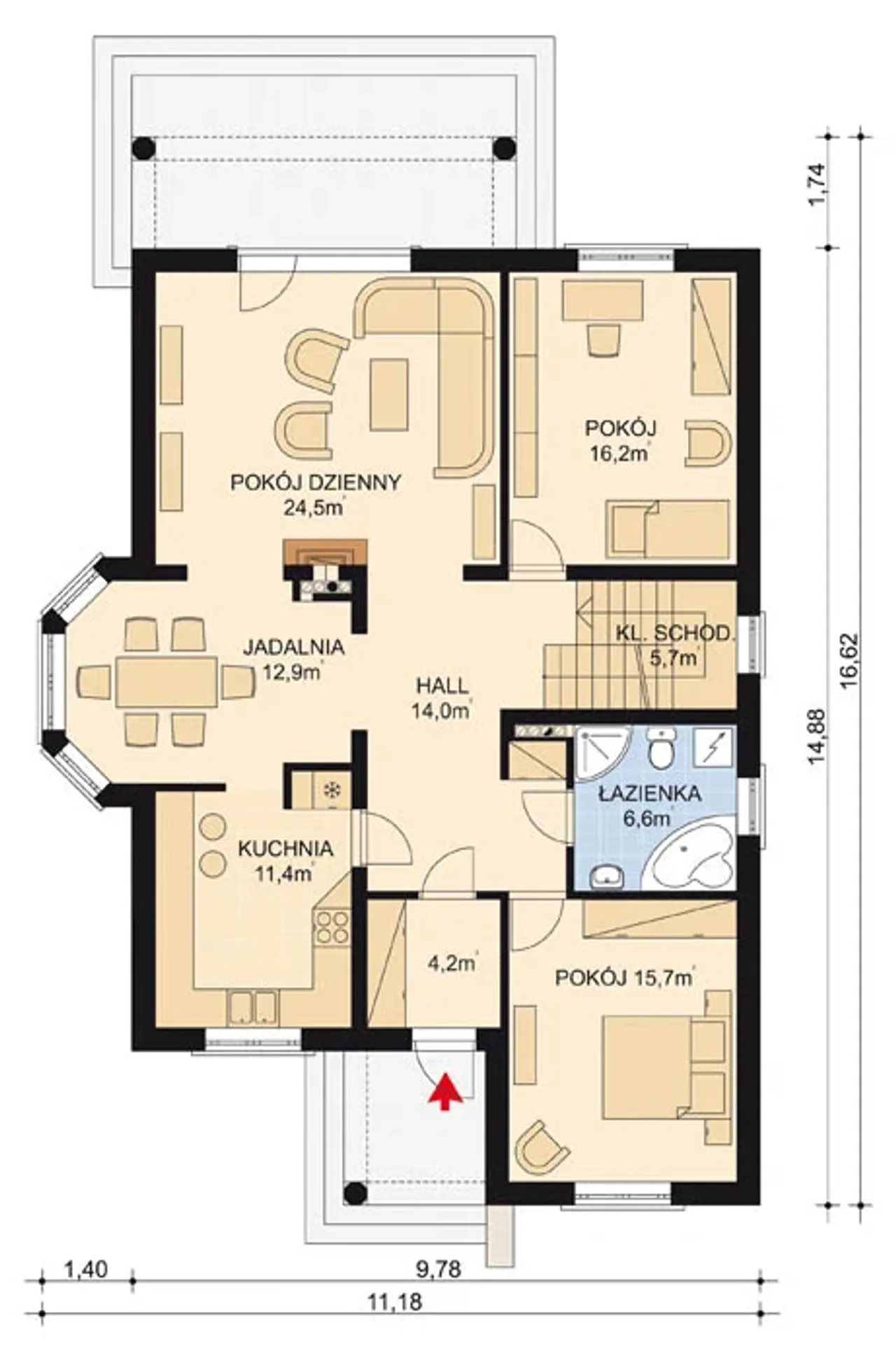 Kupując projekt w technologii murowanej powinieneś budować dom murowany. Zupełna zmiana technologii na szkieletową wymaga przeprojektowania całego budynku ( zmieniają się obciążenia, fundamenty, konstrukcja dachu). Wydamy zgodę na takie przeprojektowanie jednak wiążę się to z dużymi kosztami. Istnieją firmy wykonawcze, które podejmują się zmiany technologii budowy bezpłatnie przy skorzystaniu z ich usług wykonawczych. Zdarza się, że pracownia architektoniczna przygotowuje warianty konkretnego projektu przewidując także inne technologie. Prosimy o sprawdzenie czy istnieje poszukiwana wersja projektu, w zakładce - warianty projektu.