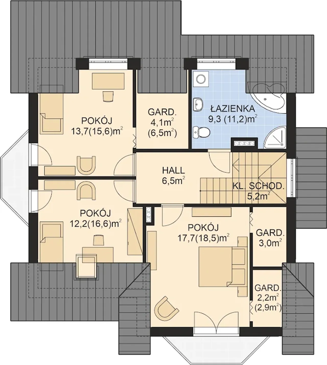 | 5. łazienka | 9,30 (11,20) m² |