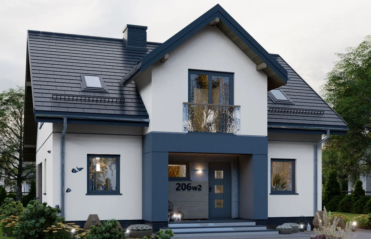 Wypełnij formularz i otrzymaj rysunki w pdf z dokładnymi wymiarami budynku i pomieszczeń (długość, szerokość, wysokość) dla projektu APS 206 wariant 2