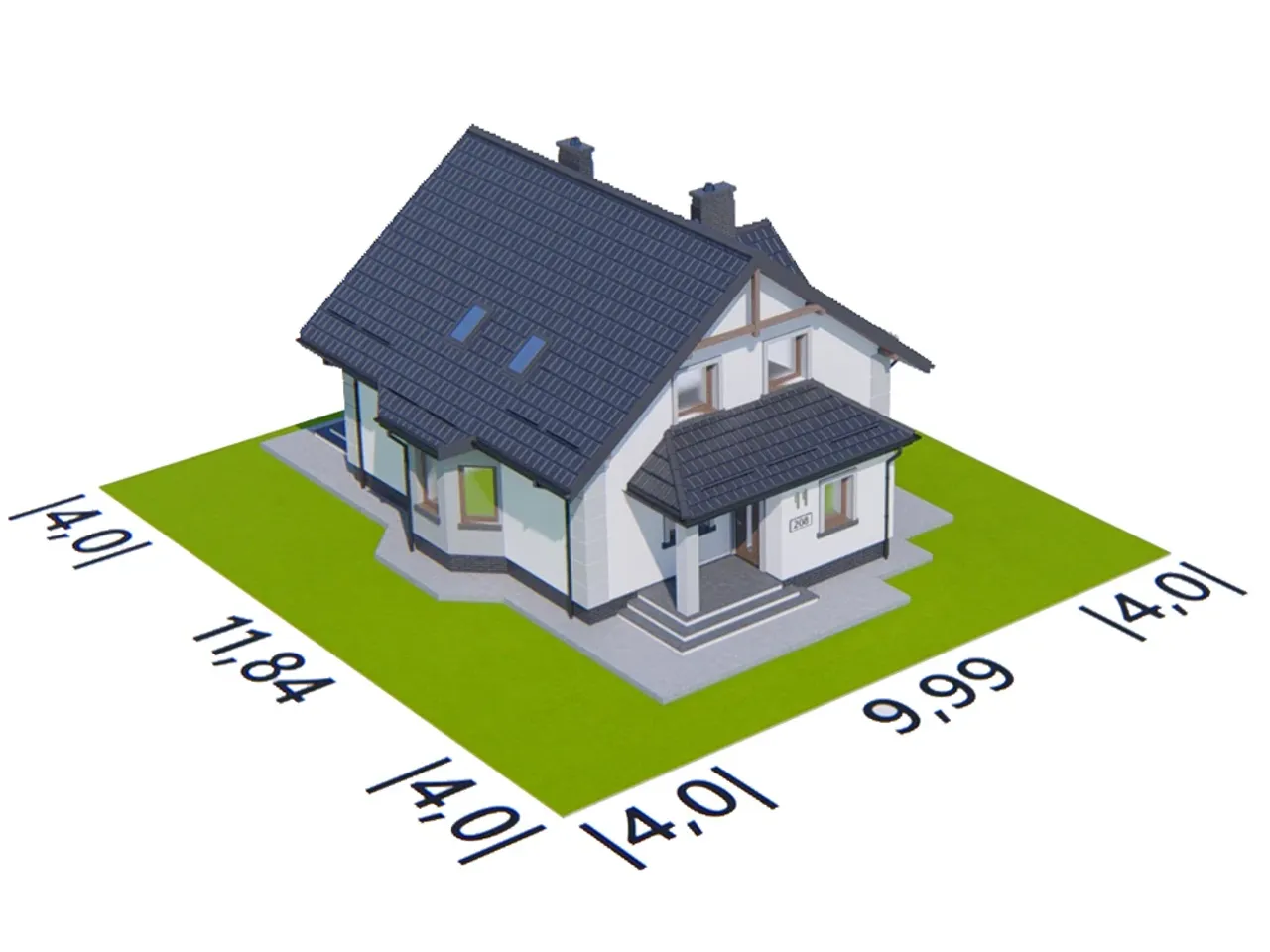 Wypełnij formularz i otrzymaj rysunki w pdf z dokładnymi wymiarami budynku i pomieszczeń (długość, szerokość, wysokość) dla projektu APS 208