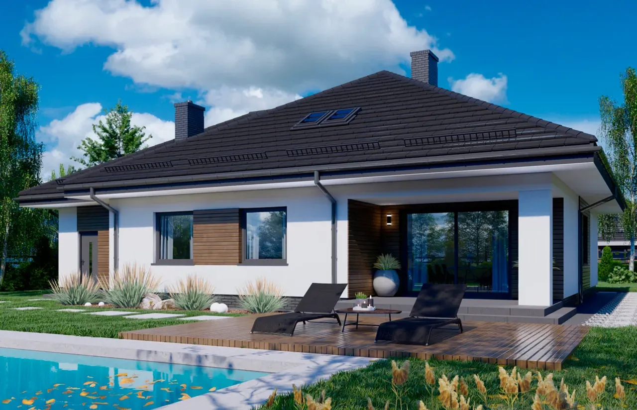 Kupując projekt w technologii murowanej powinieneś budować dom murowany. Zupełna zmiana technologii na szkieletową wymaga przeprojektowania całego budynku ( zmieniają się obciążenia, fundamenty, konstrukcja dachu). Wydamy zgodę na takie przeprojektowanie jednak wiążę się to z dużymi kosztami. Istnieją firmy wykonawcze, które podejmują się zmiany technologii budowy bezpłatnie przy skorzystaniu z ich usług wykonawczych. Zdarza się, że pracownia architektoniczna przygotowuje warianty konkretnego projektu przewidując także inne technologie. Prosimy o sprawdzenie czy istnieje poszukiwana wersja projektu, w zakładce - warianty projektu.