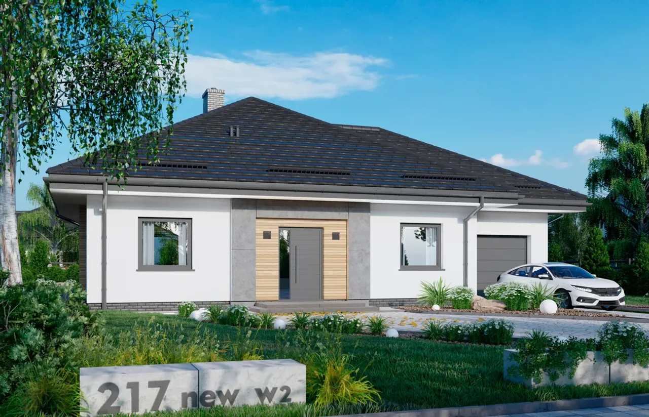 Wypełnij formularz i otrzymaj rysunki w pdf z dokładnymi wymiarami budynku i pomieszczeń (długość, szerokość, wysokość) dla projektu APS 217 NEW wariant 2