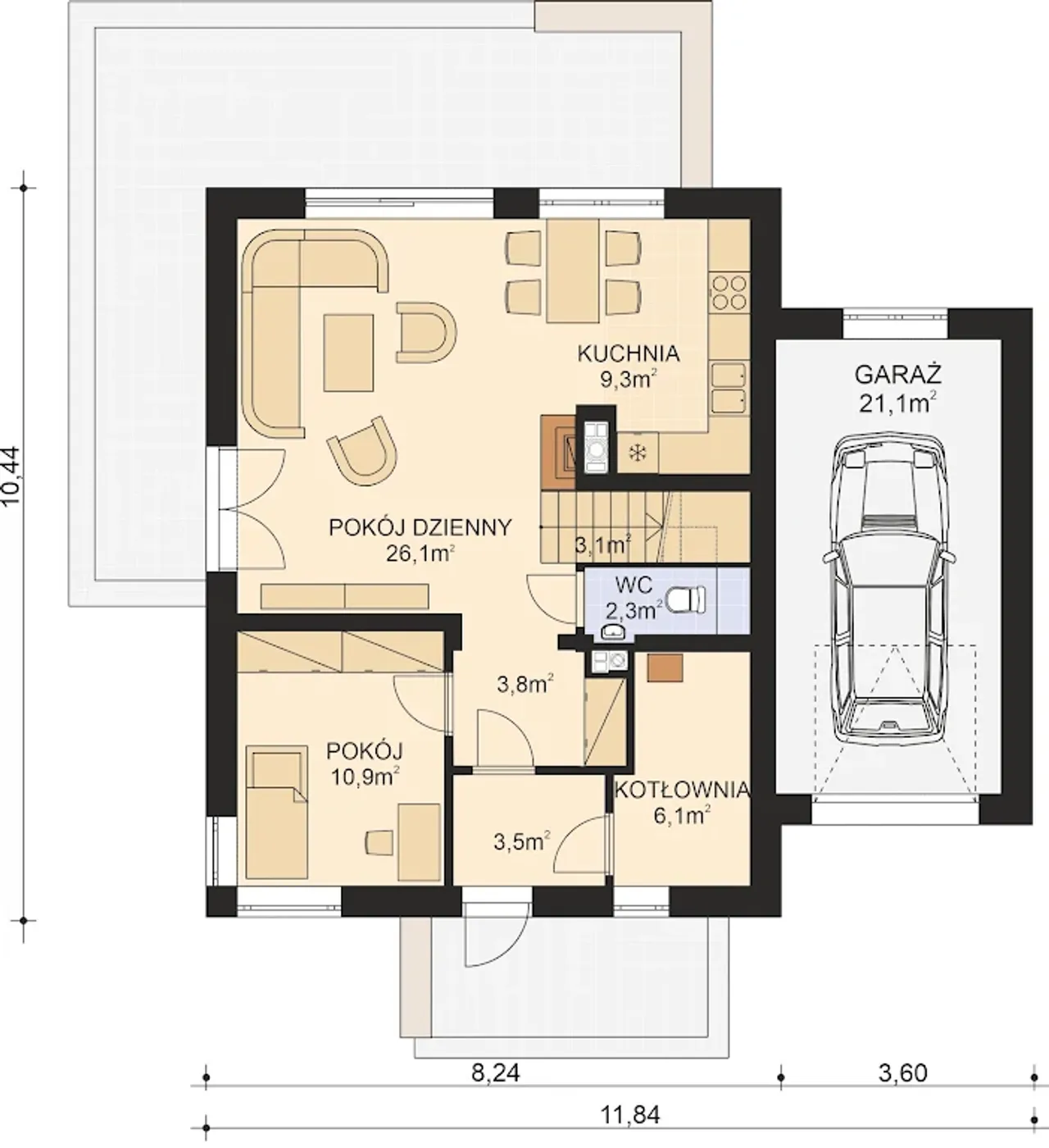 | 3. Pokój dzienny z jadalnią | 26,80 m² |