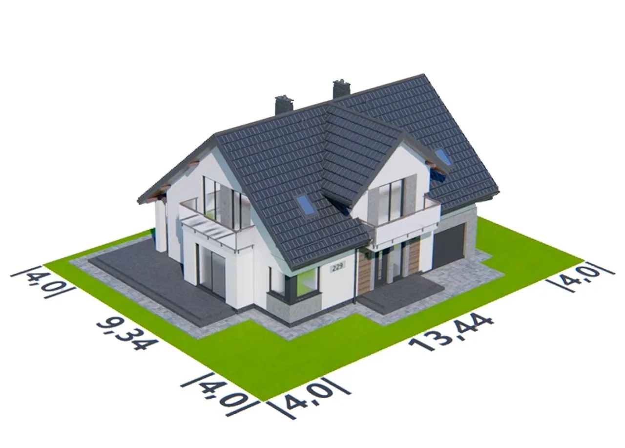 Wypełnij formularz i otrzymaj rysunki w pdf z dokładnymi wymiarami budynku i pomieszczeń (długość, szerokość, wysokość) dla projektu APS 229 ECO