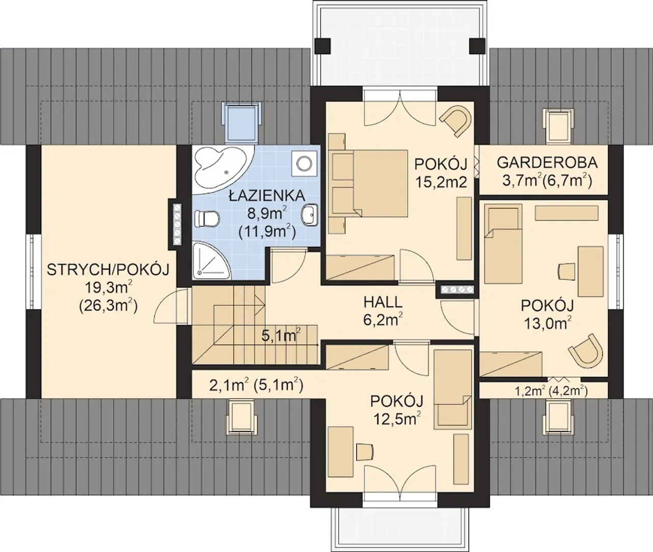 8. Strych / pokój | 19,30 (26,30) m² |