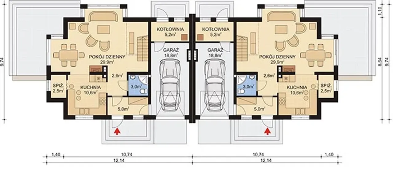 Długość budynku 9.74 m |