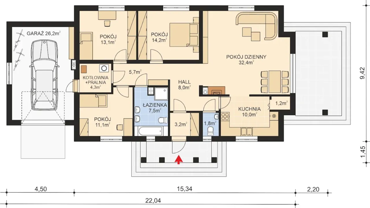 Ten projekt, Dom APS 245 ECO, z pewnością przyciąga wzrok. Jego nowoczesna forma olśniewa elegancją, a fasada urzeka starannie zaplanowaną architekturą. Prostota formy wprowadza minimalistyczną estetykę, a duże przeszklenia zapewniają obfitość naturalnego światła. Wnętrze zostało zaprojektowane z myślą o funkcjonalności i precyzji, z wyraźnym podziałem na strefy. Dodatkowym atutem projektu są ekologiczne rozwiązania konstrukcyjne. Projekt APS 245 ECO wzbudza we mnie entuzjazm i rozważam możliwość jego zakupu oraz realizacji budowy domu.