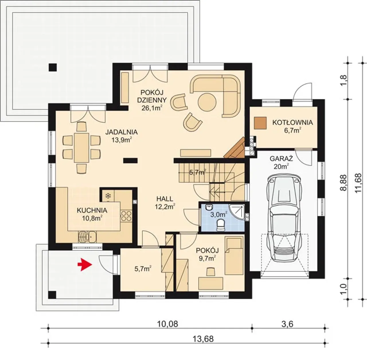 Szerokość budynku 13.68 m |