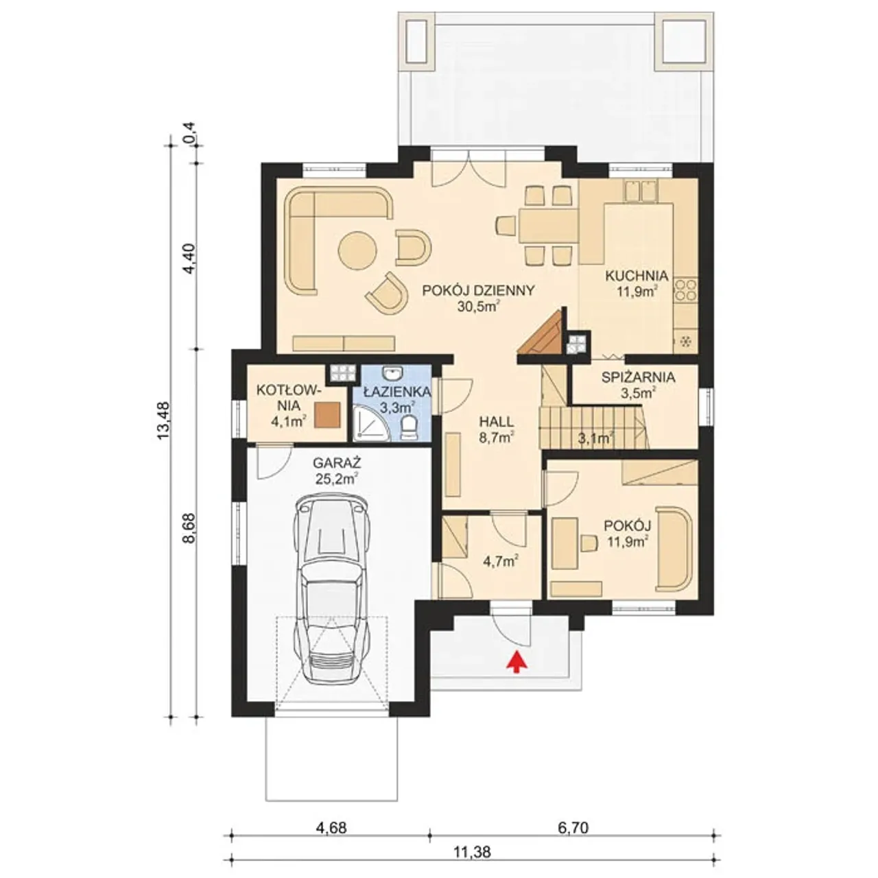 Szerokość budynku 11.68 m |