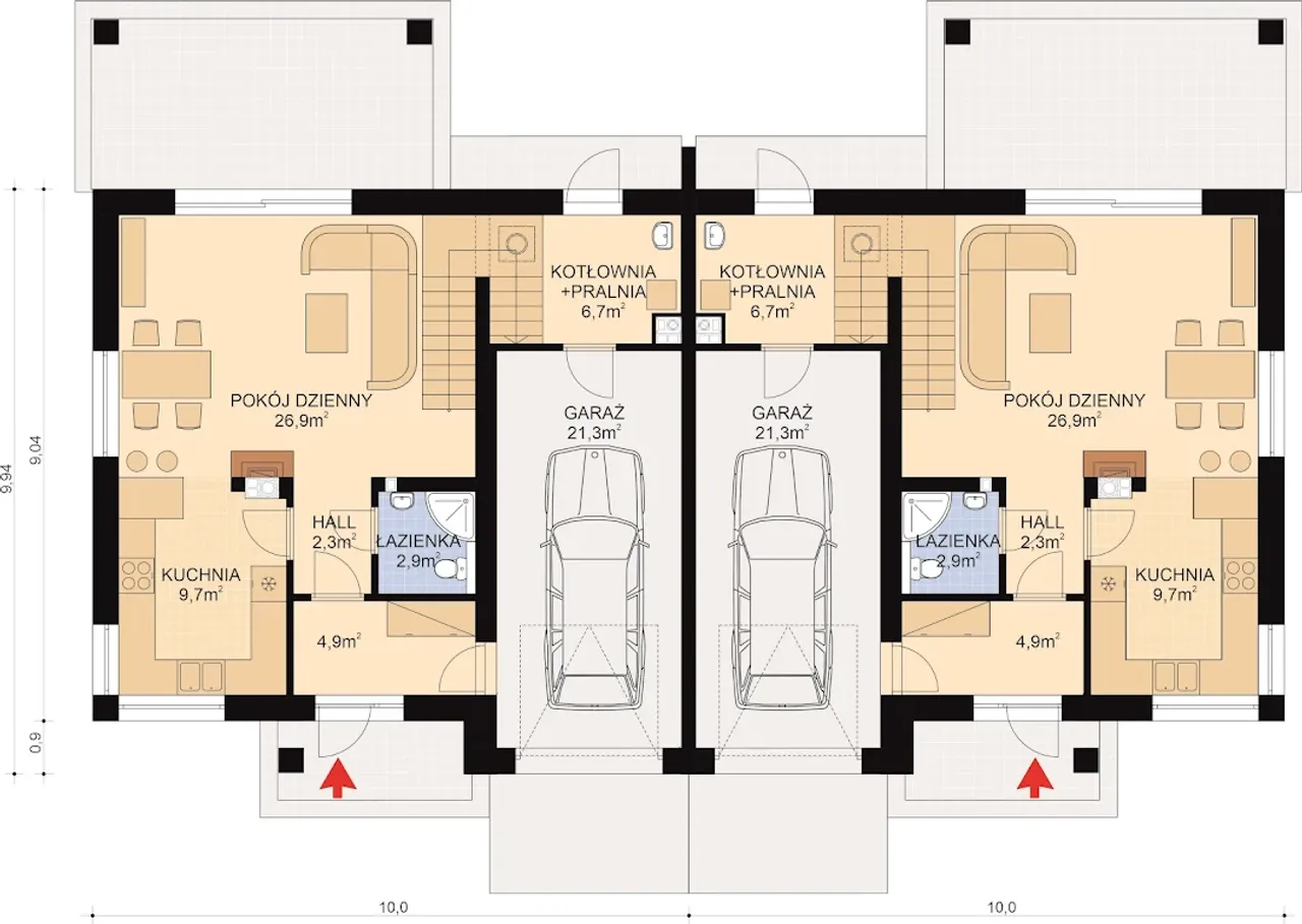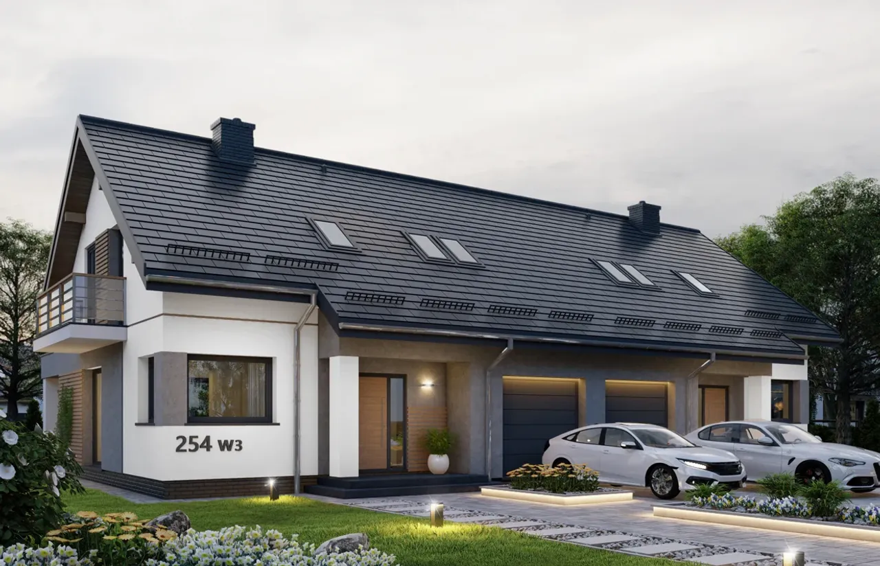 Wypełnij formularz i otrzymaj rysunki w pdf z dokładnymi wymiarami budynku i pomieszczeń (długość, szerokość, wysokość) dla projektu APS 254 wariant 3 DWULOKALOWY