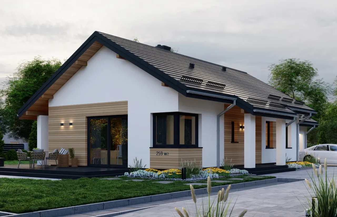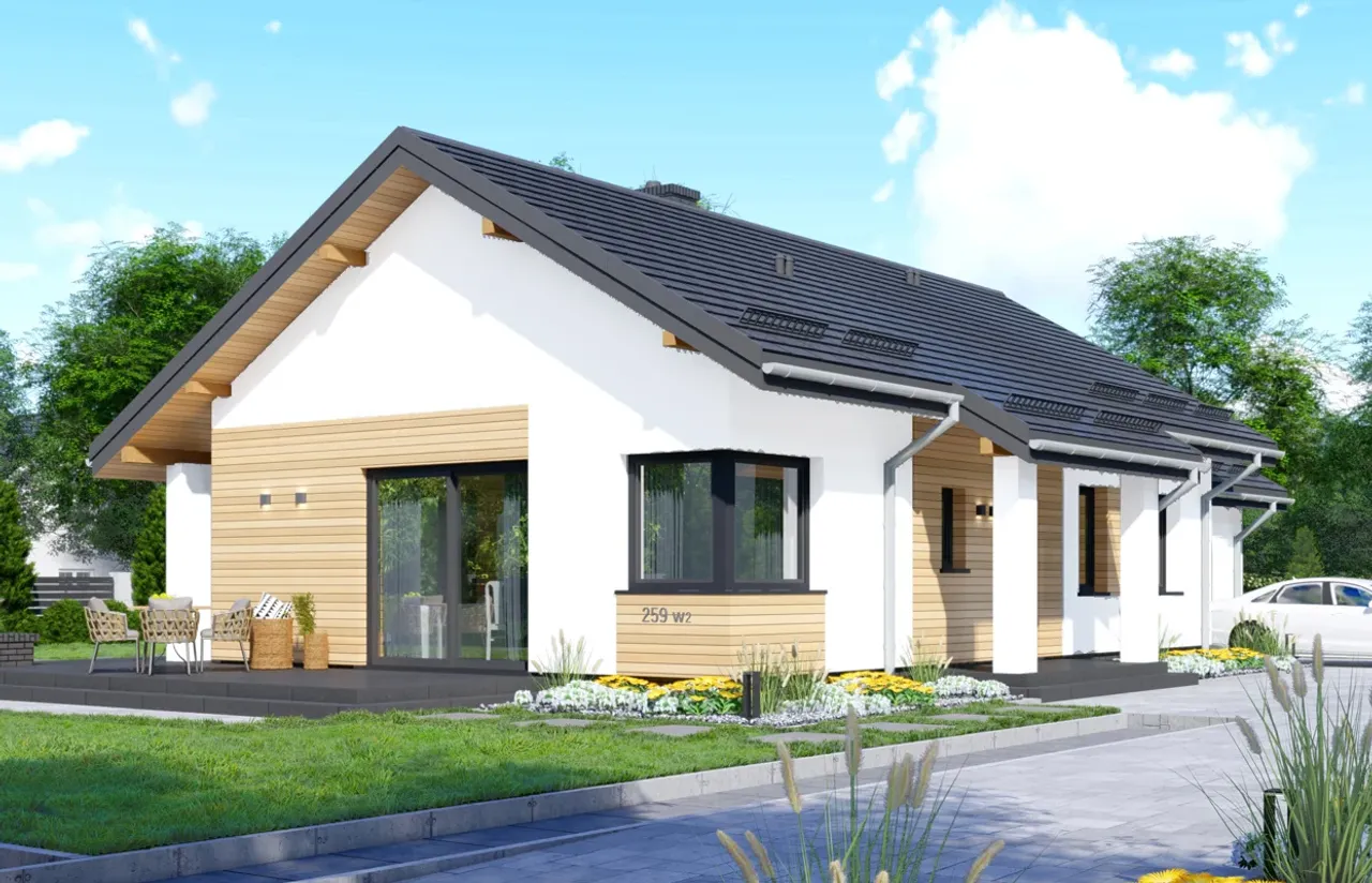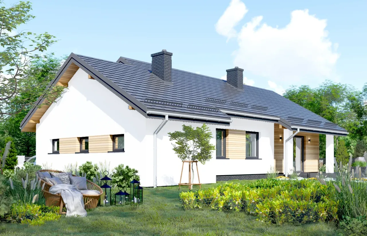 Kupując projekt w technologii murowanej powinieneś budować dom murowany. Zupełna zmiana technologii na szkieletową wymaga przeprojektowania całego budynku ( zmieniają się obciążenia, fundamenty, konstrukcja dachu). Wydamy zgodę na takie przeprojektowanie jednak wiążę się to z dużymi kosztami. Istnieją firmy wykonawcze, które podejmują się zmiany technologii budowy bezpłatnie przy skorzystaniu z ich usług wykonawczych. Zdarza się, że pracownia architektoniczna przygotowuje warianty konkretnego projektu przewidując także inne technologie. Prosimy o sprawdzenie czy istnieje poszukiwana wersja projektu, w zakładce - warianty projektu.